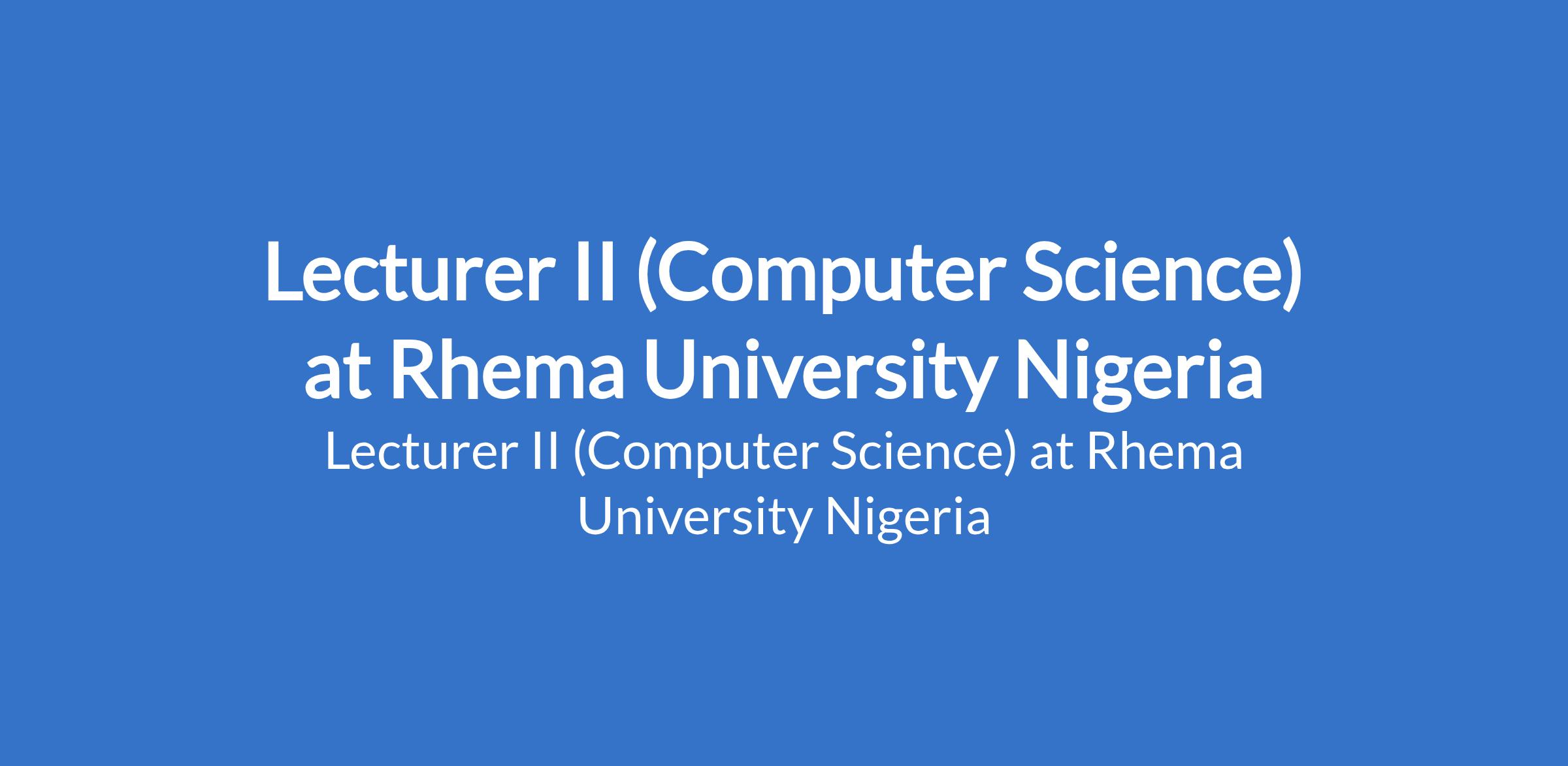 Rhema University Nigeria invites applications from suitably qualified candidates for the position of: Lecturer II (Computer Science). The position is located in Aba, Abia State. Interested candidates should possess a Ph.D Degree with relevant experience.