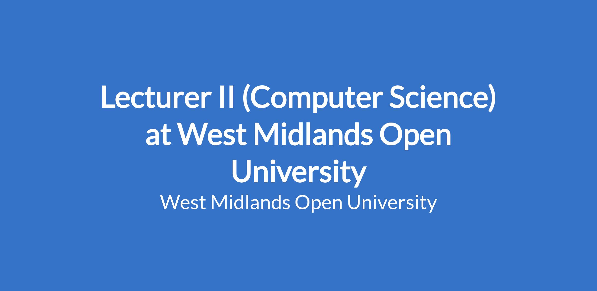 Lecturer II (Computer Science) at West Midlands Open University