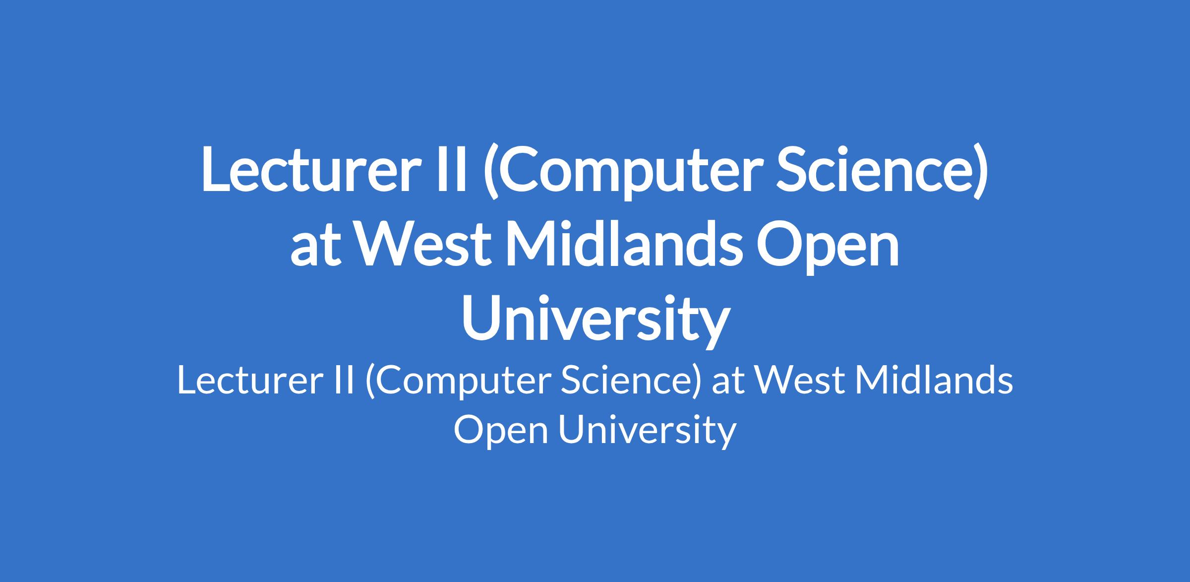 West Midlands Open University invites applications from suitable candidates to fill the position of: Lecturer II (Computer Science). The position is located in Ikeja, Lagos State. Interested candidates should possess a Ph.D Degree or at least, 3 years of teaching experience as Assistant Lecturer in addition to at least 4 points from recognized publications.
