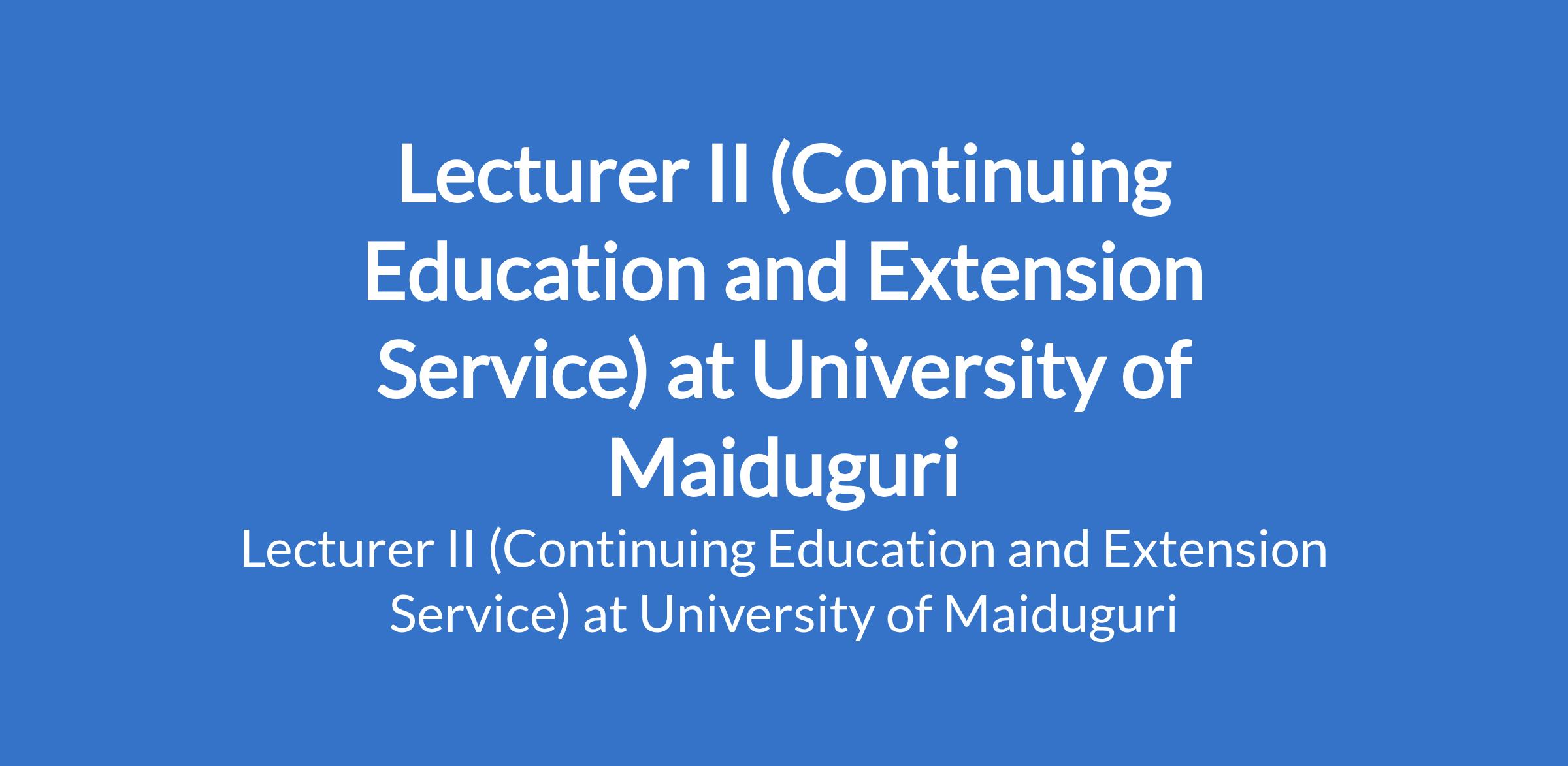 University of Maiduguri invites applications from suitable candidates to fill the position of: Lecturer II (Continuing Education and Extension Service). The position is located in Borno State. Interested candidates should possess a Master's Degree from University of Maiduguri or another recognised institution with at least three years post-qualification experience.