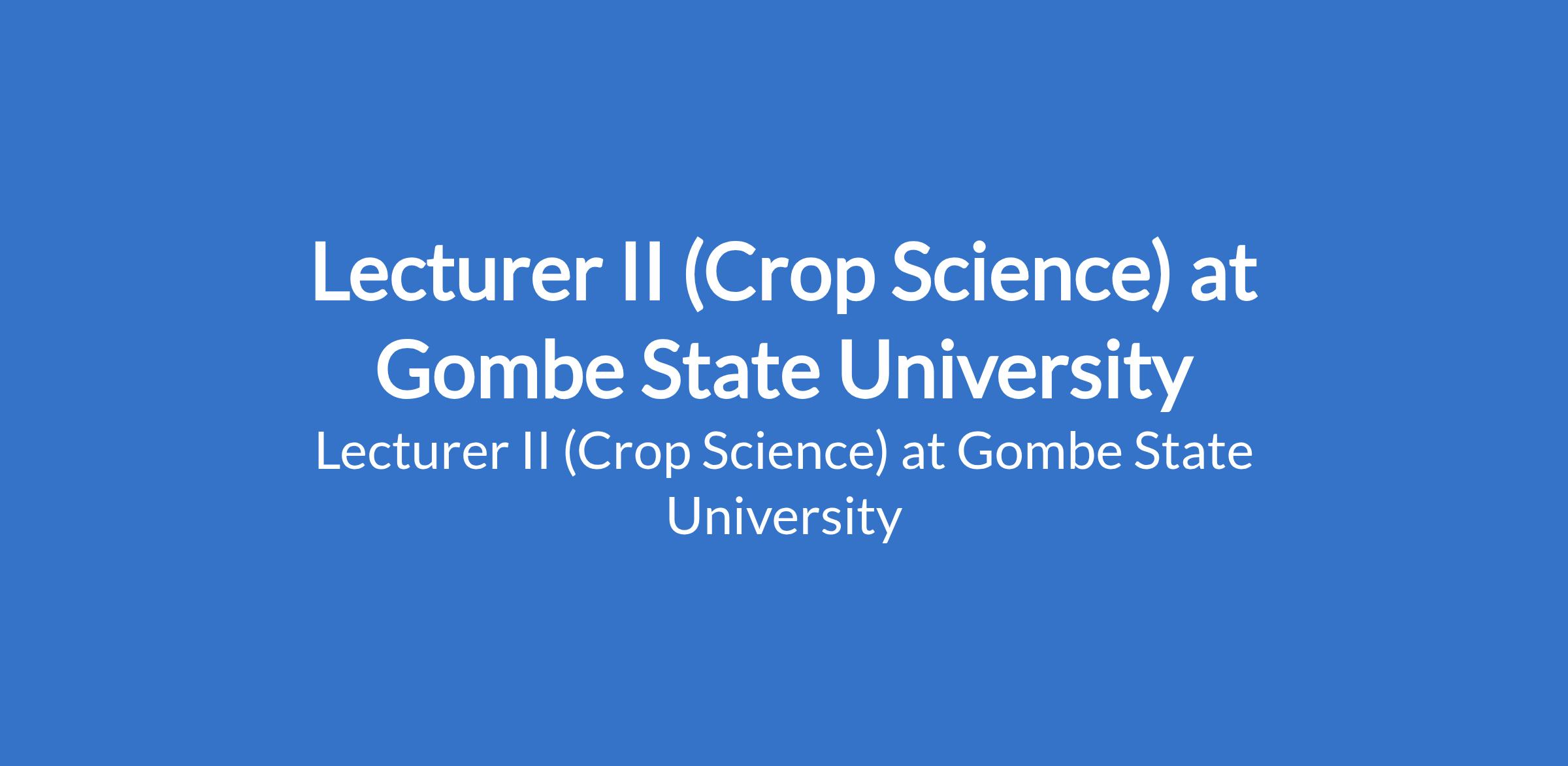 Gombe State University invites applications from suitable candidates to fill the position of: Lecturer II (Crop Science). The position is located in Tudun - Wada, Gombe State. Interested candidates should possess a Ph.D or Masters Degree with a research potential; M.Sc holders require at least 5 publication points.