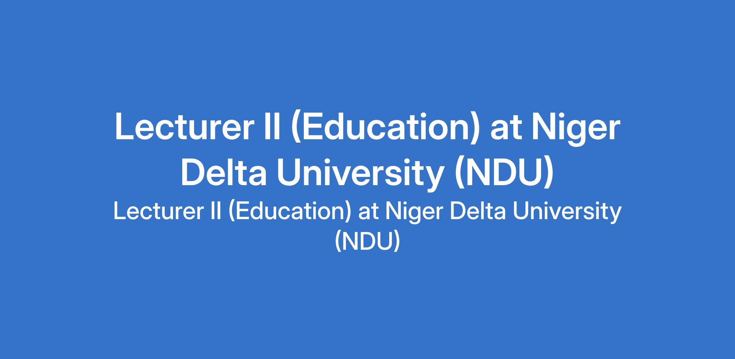 Niger Delta University (NDU) invites applications from suitably qualified candidates to fill the position of: Lecturer II (Education). The position is located in Wilberforce Island, Bayelsa State. Interested candidates should possess a PhD from a recognized university, or a Masters degree with at least one journal publication with a minimum of three years of pre-teaching experience.