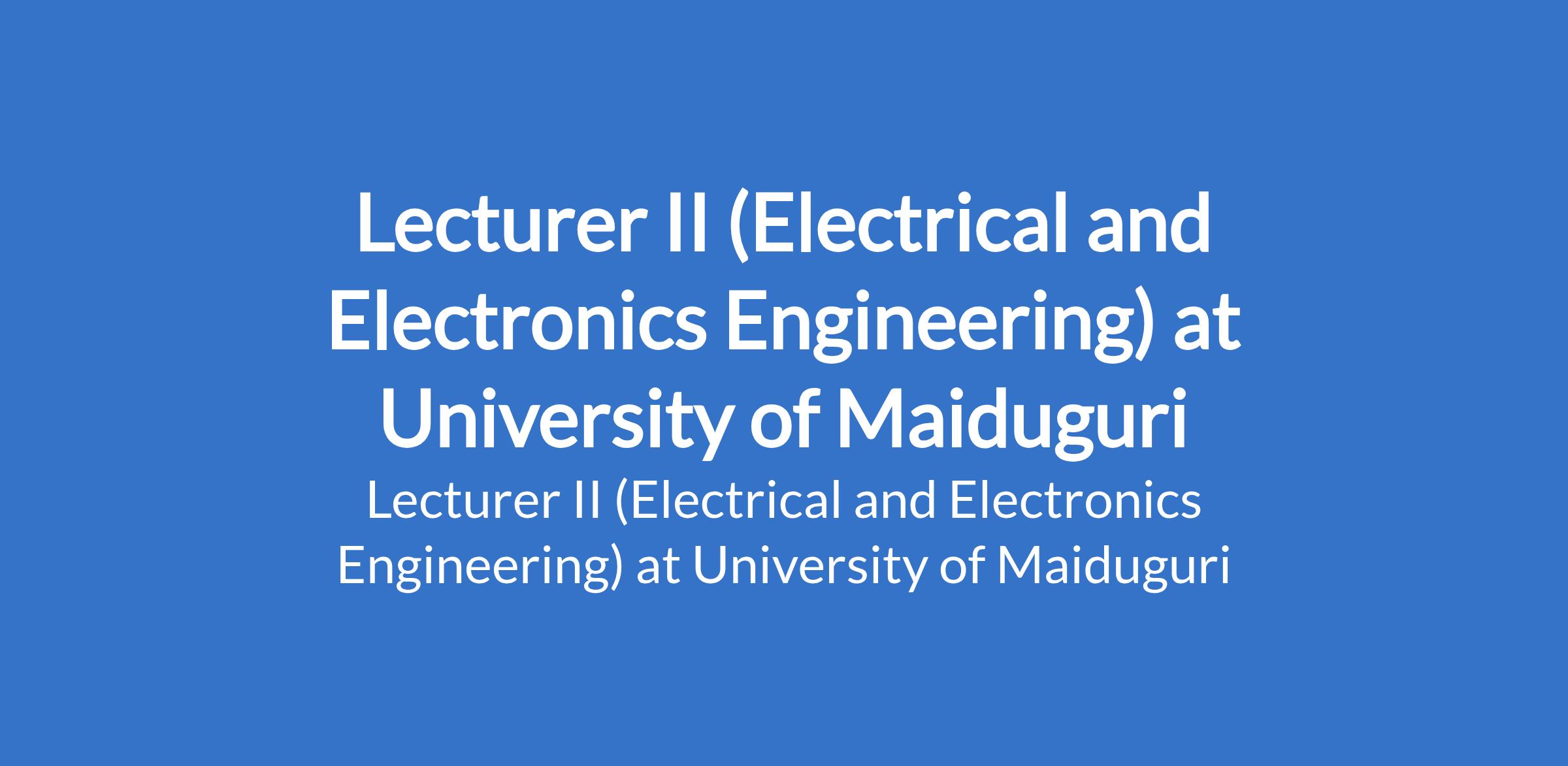 University of Maiduguri invites applications from suitable candidates to fill the position of: Lecturer II (Electrical and Electronics Engineering). The position is located in Borno State. Interested candidates should possess a Master's Degree from University of Maiduguri or another recognised institution with at least three years post-qualification experience.