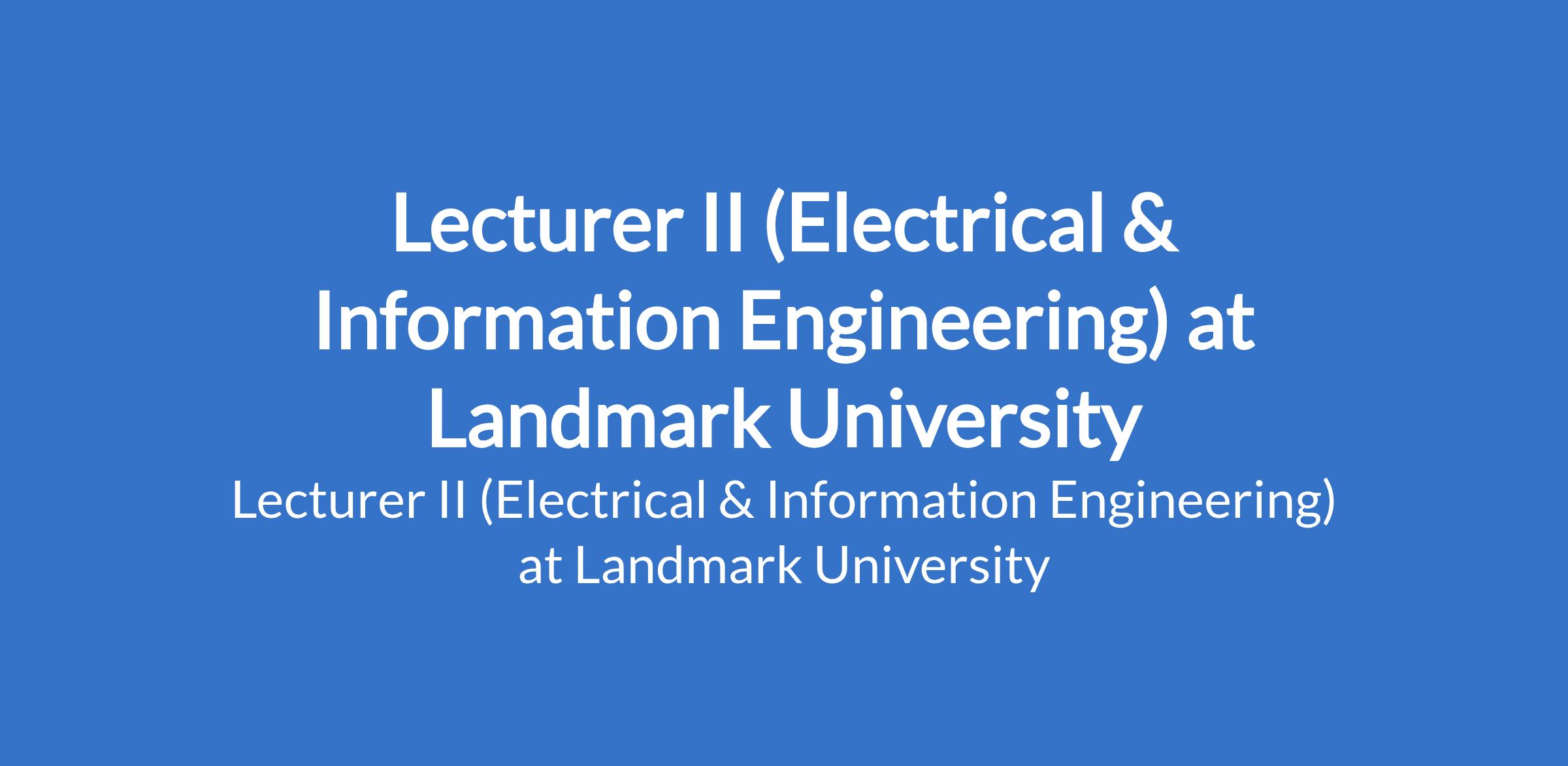 Landmark University invites applications from suitable candidates to fill the position of: Lecturer II (Electrical & Information Engineering). The position is located in Omu-Aran, Kwara State. Interested candidates should possess a Ph.D. Degree from a reputable university, with or without evidence of scholarly publications.