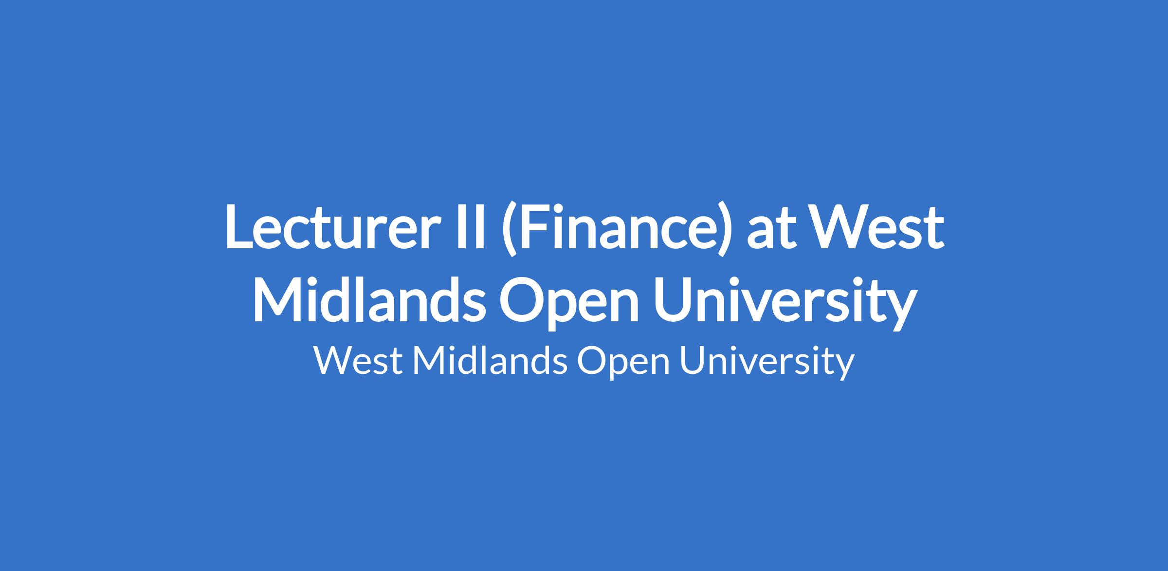 Lecturer II (Finance) at West Midlands Open University