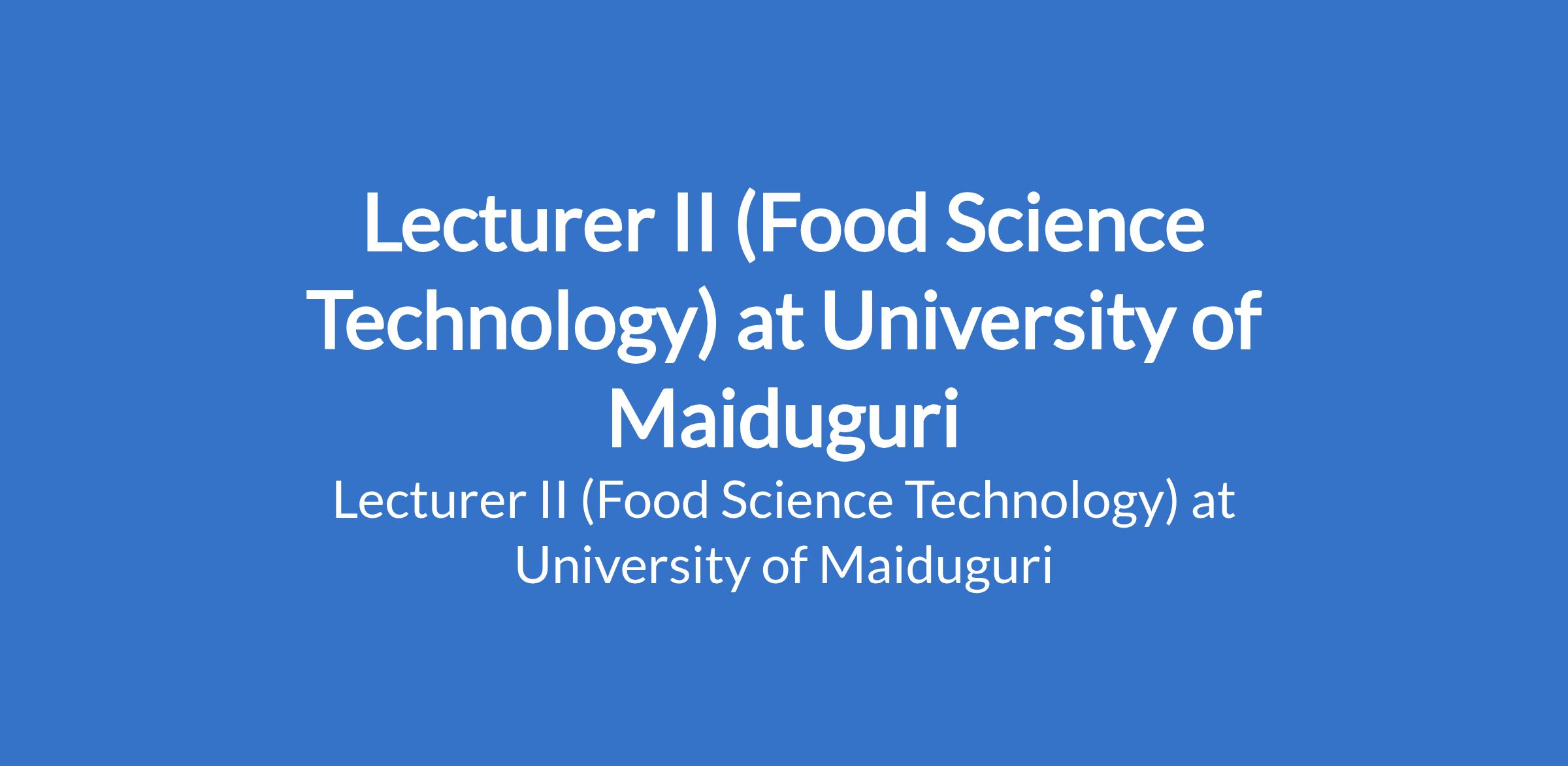 University of Maiduguri invites applications from suitable candidates to fill the position of: Lecturer II (Food Science Technology). The position is located in Borno State. Interested candidates should possess a Master's Degree from University of Maiduguri or another recognised institution with at least three years post-qualification experience.