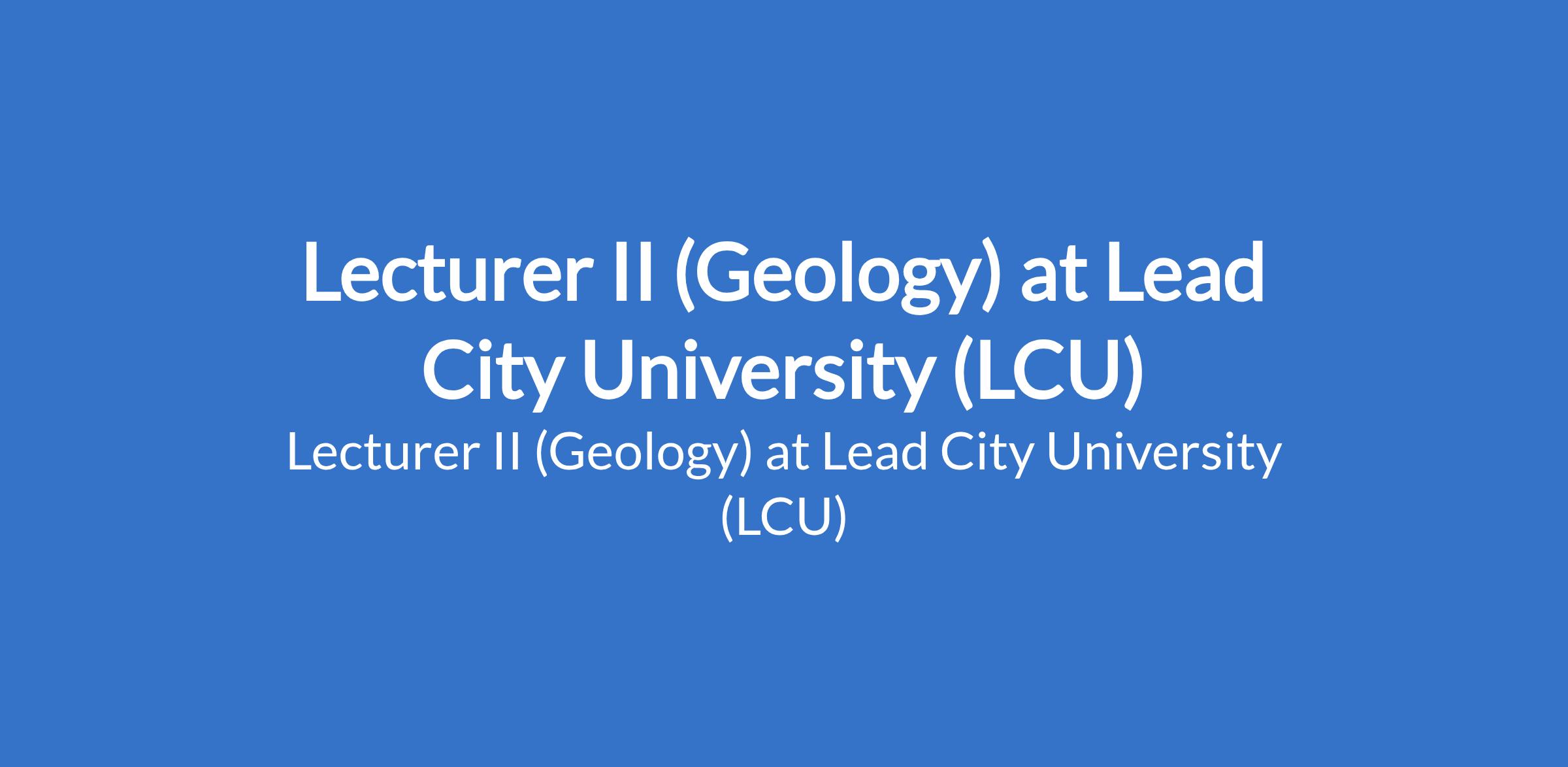 LLead City University (LCU) invites applications from suitable candidates to fill the position of: Lecturer II (Geology). The position is located in Ibadan, Oyo State. Interested candidates should possess a good First Degree, not below second class lower division, from a reputable University and a PhD Degree in the appropriate discipline, a Master's Degree plus a recognised professional certificate / licence in the appropriate discipline will also be considered.