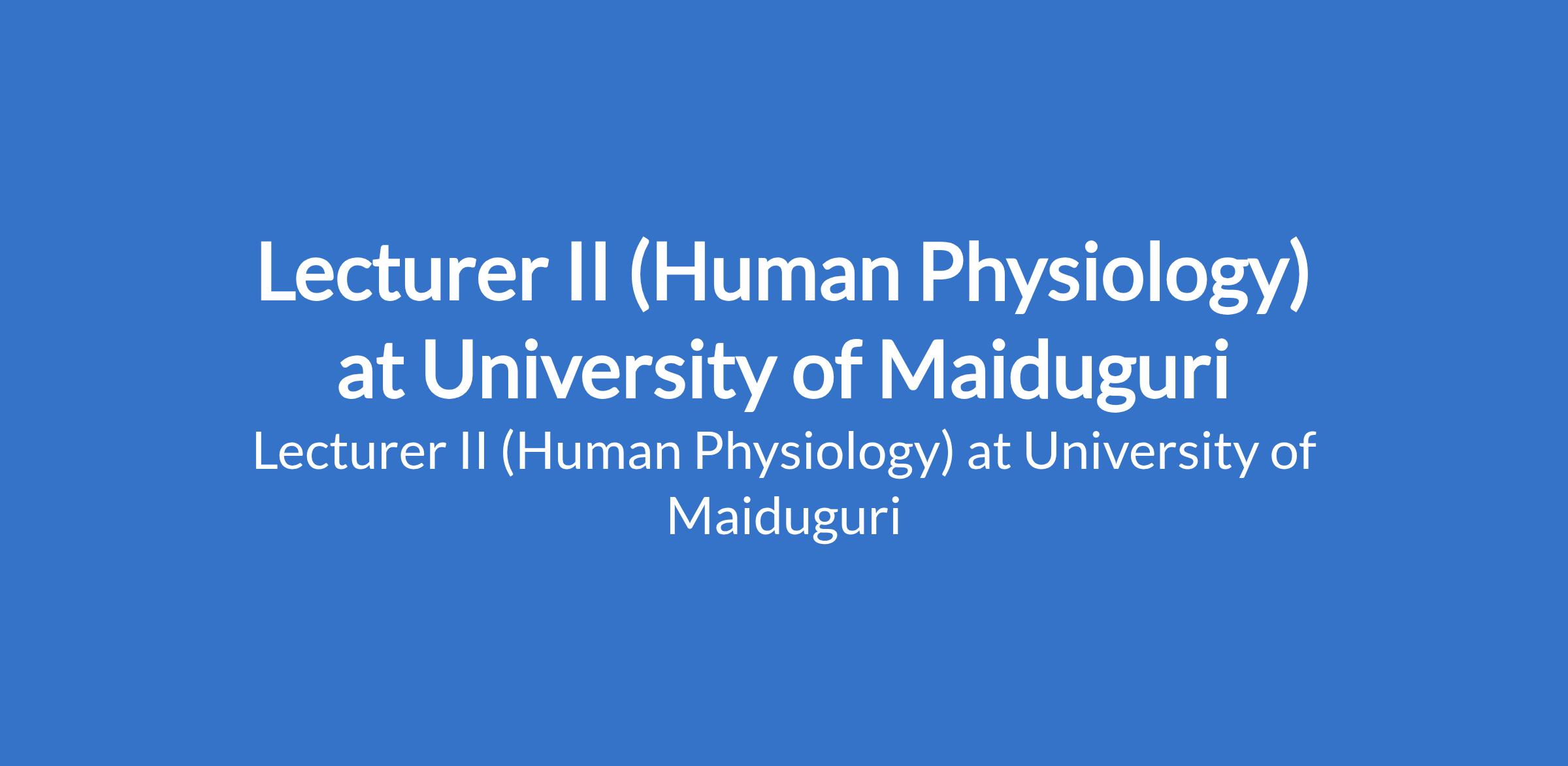 University of Maiduguri invites applications from suitable candidates to fill the position of: Lecturer II (Human Physiology). The position is located in Borno State. Interested candidates should possess a Master's Degree from University of Maiduguri or another recognised institution with at least three years post-qualification experience.