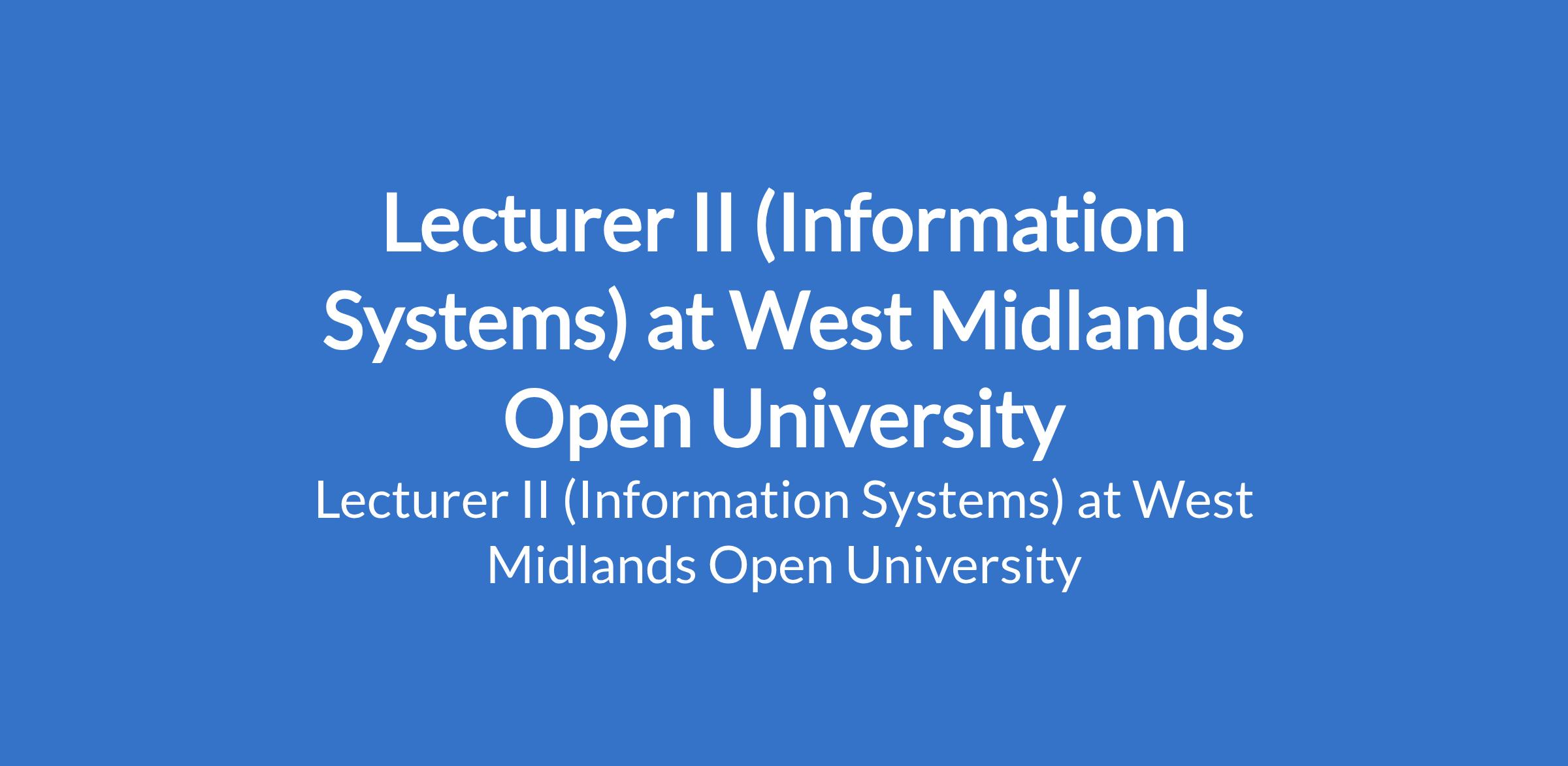 West Midlands Open University invites applications from suitable candidates to fill the position of: Lecturer II (Information Systems). The position is located in Ikeja, Lagos State. Interested candidates should possess a Ph.D Degree or at least, 3 years of teaching experience as Assistant Lecturer in addition to at least 4 points from recognized publications.