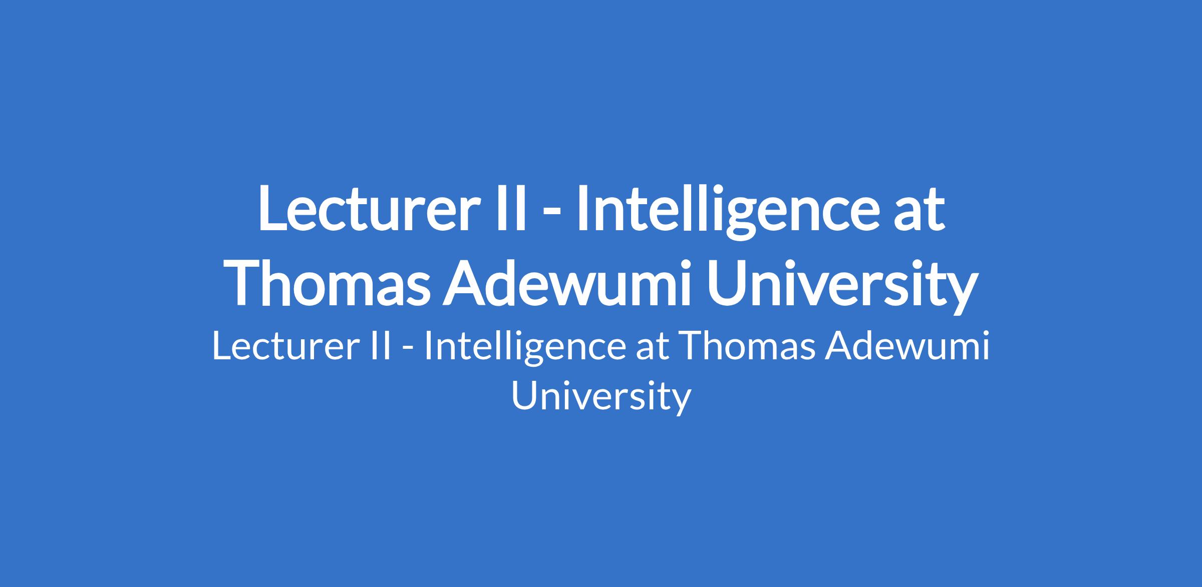 Thomas Adewumi University invites applications from suitable candidates to fill the position of: Lecturer II - Intelligence. The position is located in Kwara State. Interested candidates should possess a Ph.D. in Security Studies, Criminology, Criminal Justice, or a closely related field with three to five years of teaching experience at the university level.