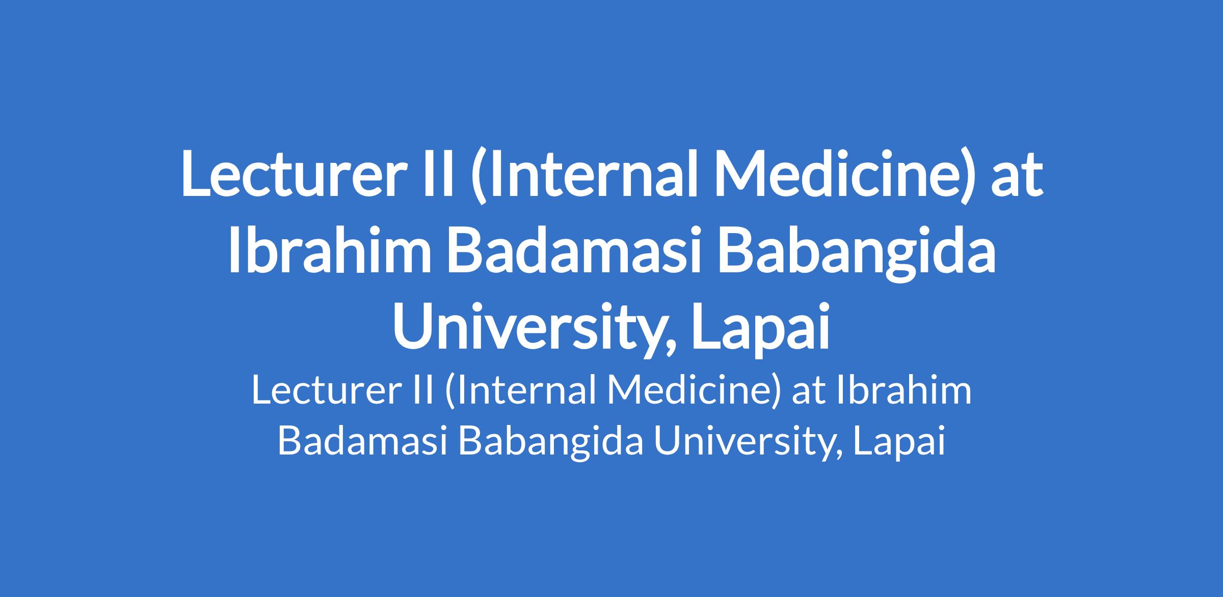 Ibrahim Badamasi Babangida University, Lapai invites applications from suitably qualified candidates to fill the position of: Lecturer II (Internal Medicine). The position is located in Niger State. Interested candidates must possess an M.B.B.S Degree from a recognized University plus professional registration with Medical and Dental Council of Nigeria (MDCN) and NYSC certificate/exemption certificate.
