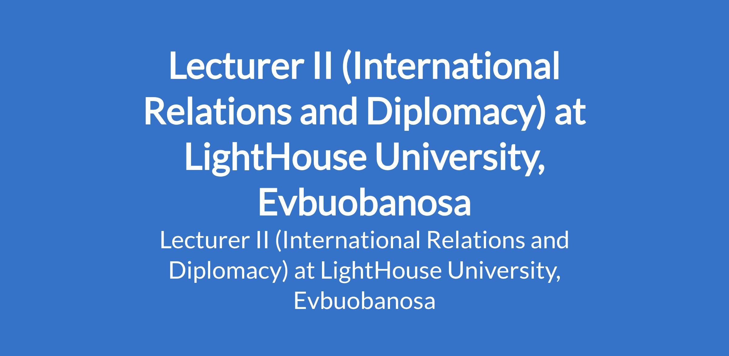 LightHouse University, Evbuobanosa invites applications from suitably qualified candidates to fill the position of: Lecturer II (International Relations and Diplomacy). The position is located in Edo State. Interested candidates should possess a Ph.D. Degree in the relevant field or evidence of Ph.D defense is required; publications are an added advantage.