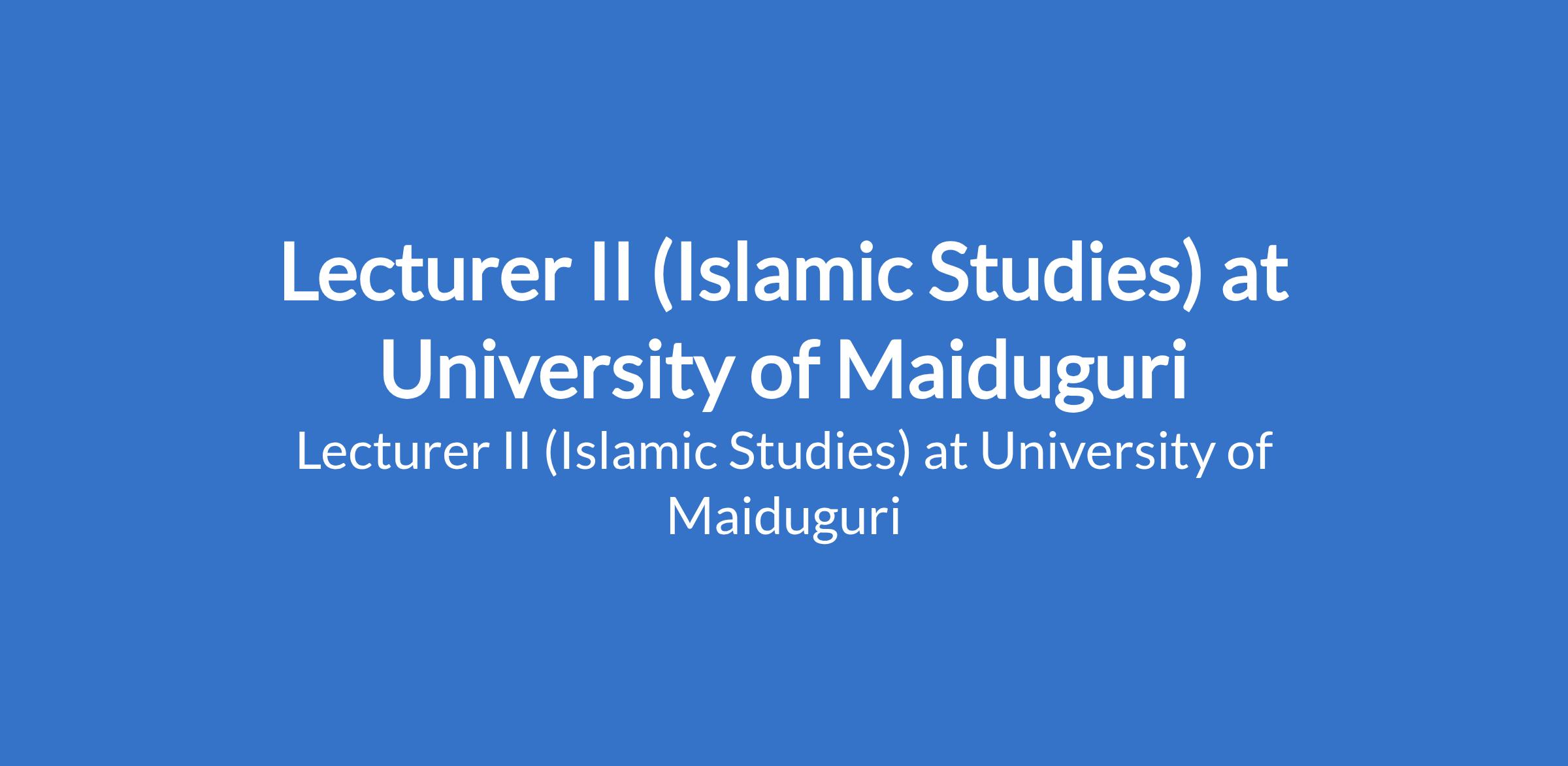 University of Maiduguri invites applications from suitable candidates to fill the position of: Lecturer II (Islamic Studies). The position is located in Borno State. Interested candidates should possess a Master's Degree from University of Maiduguri or another recognised institution with at least three years post-qualification experience.