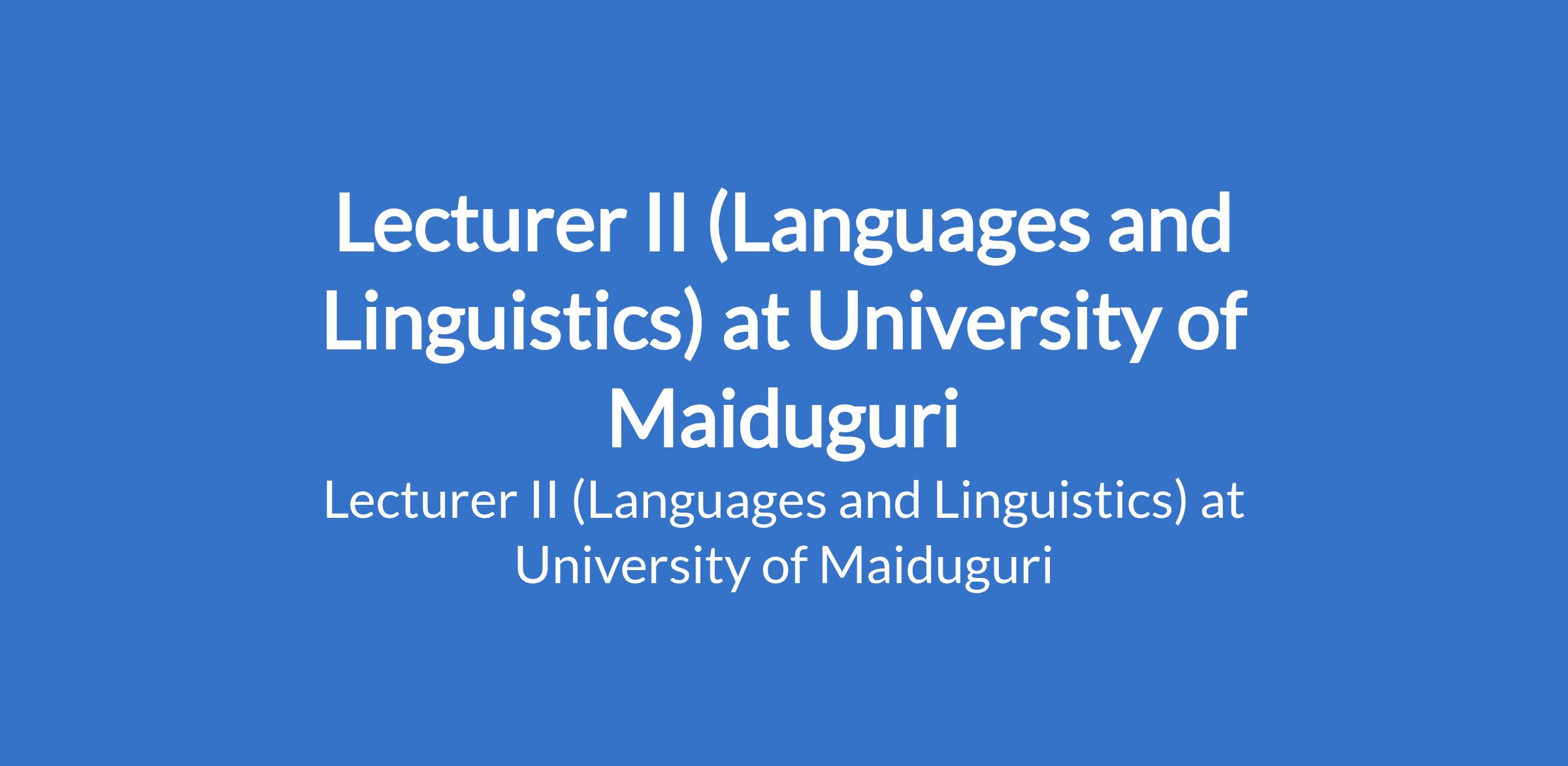 University of Maiduguri invites applications from suitable candidates to fill the position of: Lecturer II (Languages and Linguistics). The position is located in Borno State. Interested candidates should possess a Master's Degree from University of Maiduguri or another recognised institution with at least three years post-qualification experience.