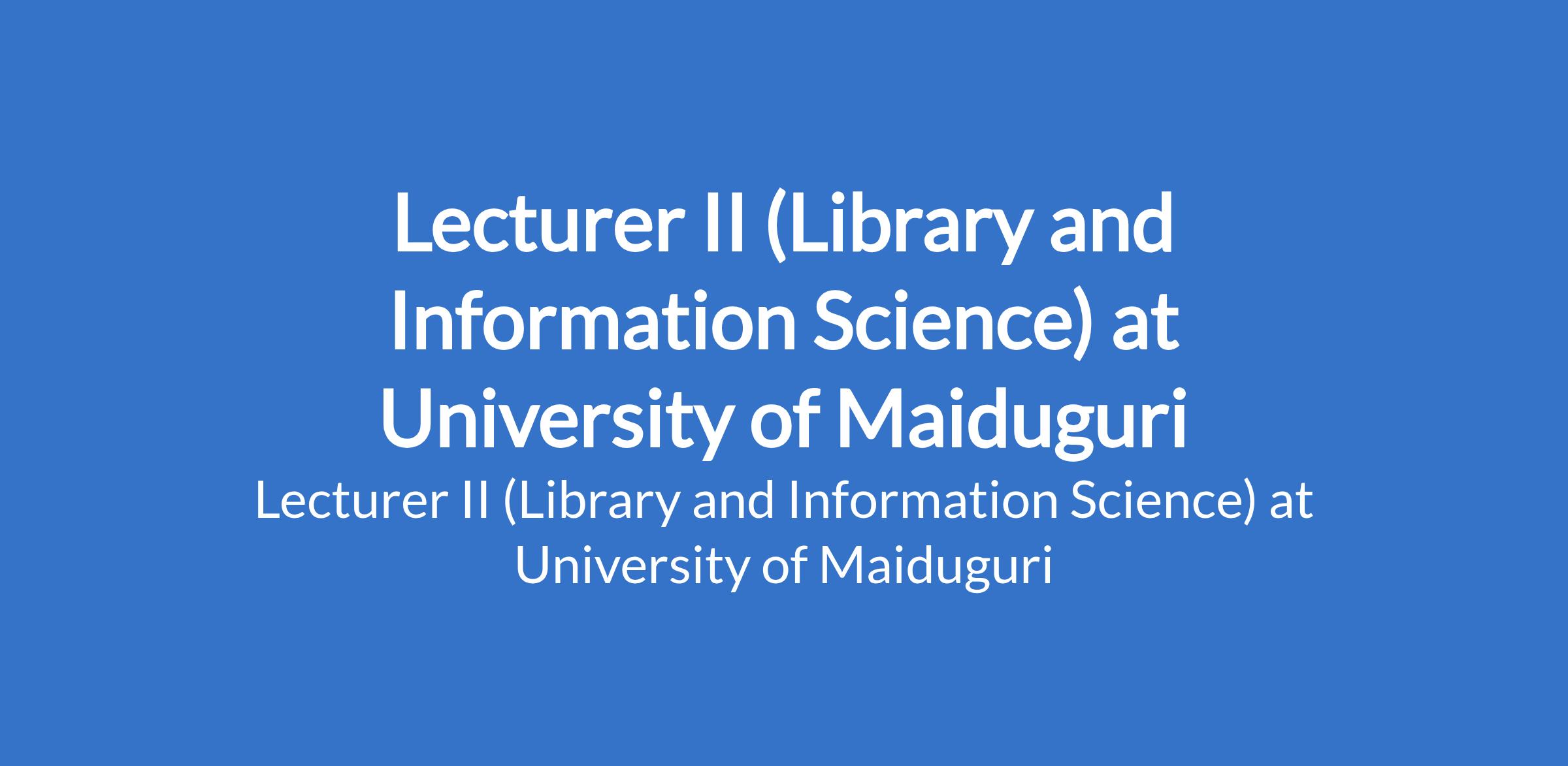 University of Maiduguri invites applications from suitable candidates to fill the position of: Lecturer II (Library and Information Science). The position is located in Borno State. Interested candidates should possess a Master's Degree from University of Maiduguri or another recognised institution with at least three years post-qualification experience.