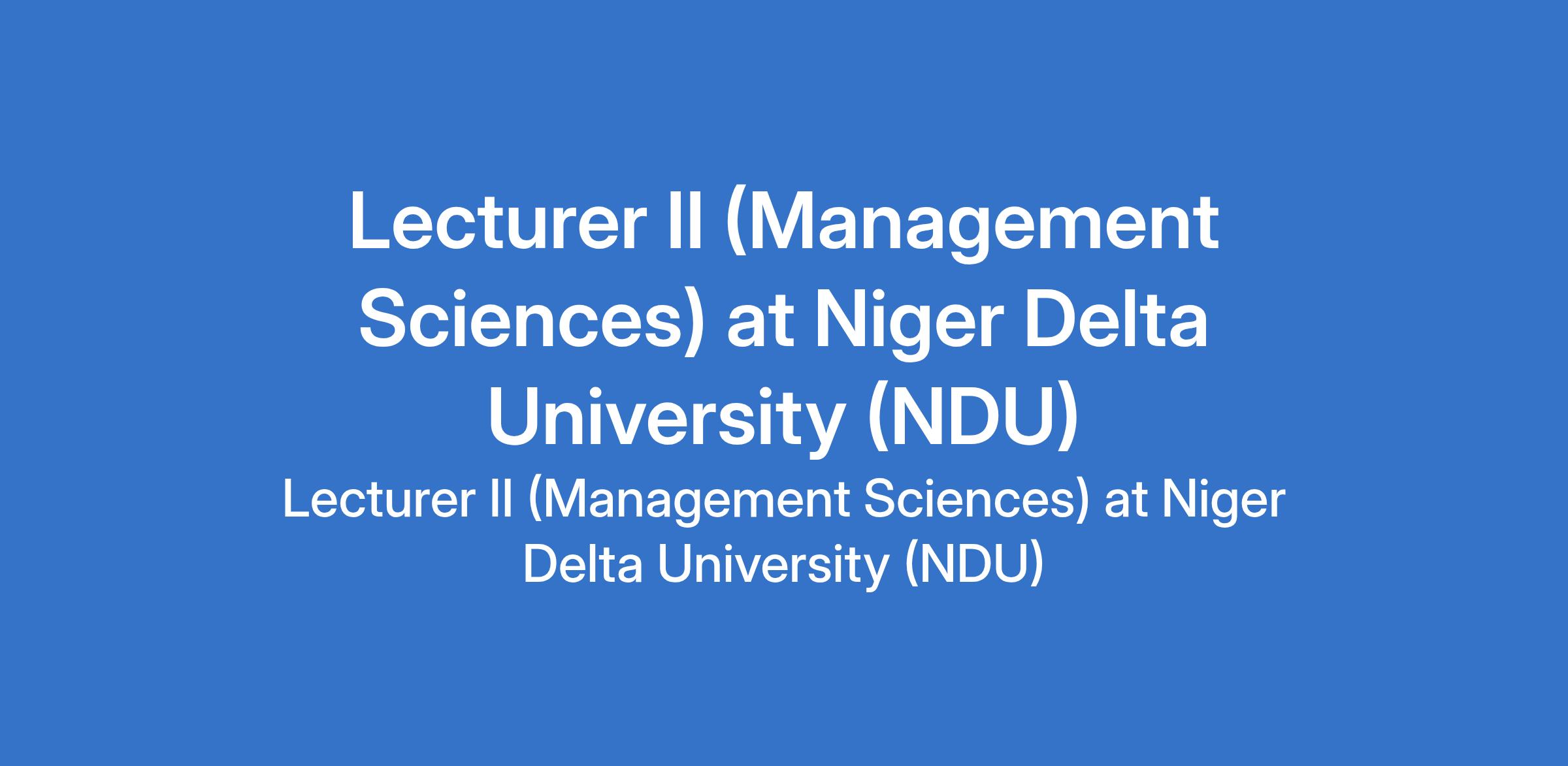 Niger Delta University (NDU) invites applications from suitably qualified candidates to fill the position of: Lecturer II(Management Sciences). The position is located in Wilberforce Island, Bayelsa State. Interested candidates should possess a Ph.D. from a recognized university, or a Masters degree with at least one journal publication with minimum of three years pre-teaching experience.