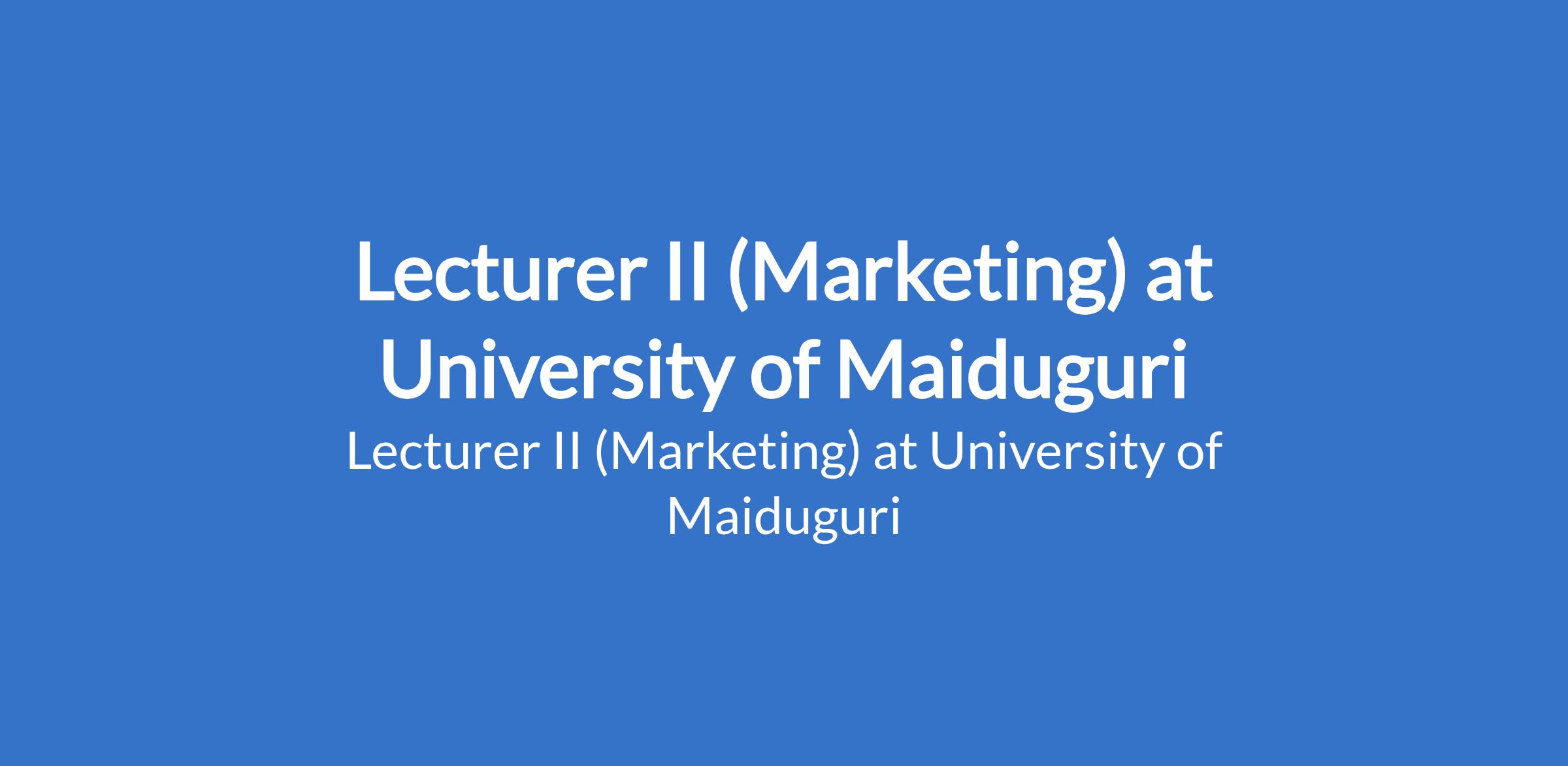 University of Maiduguri invites applications from suitable candidates to fill the position of: Lecturer II (Marketing). The position is located in Borno State. Interested candidates should possess a Master's Degree from University of Maiduguri or another recognised institution with at least three years post-qualification experience.