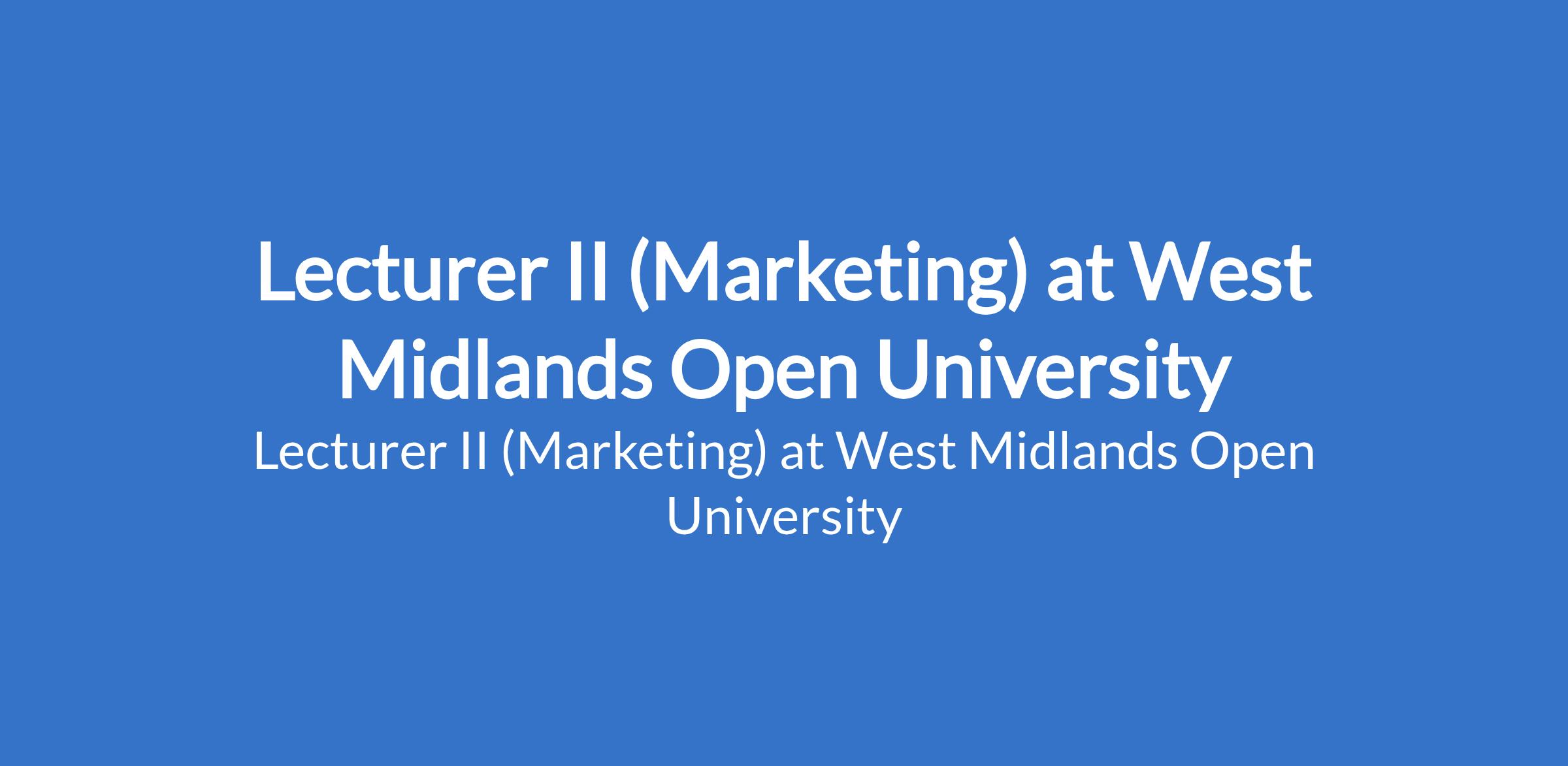 West Midlands Open University invites applications from suitable candidates to fill the position of: Lecturer II (Marketing). The position is located in Ikeja, Lagos State. Interested candidates should possess a Ph.D Degree or at least 3 years of teaching experience as an Assistant Lecturer, in addition to at least 4 points from recognized publications.