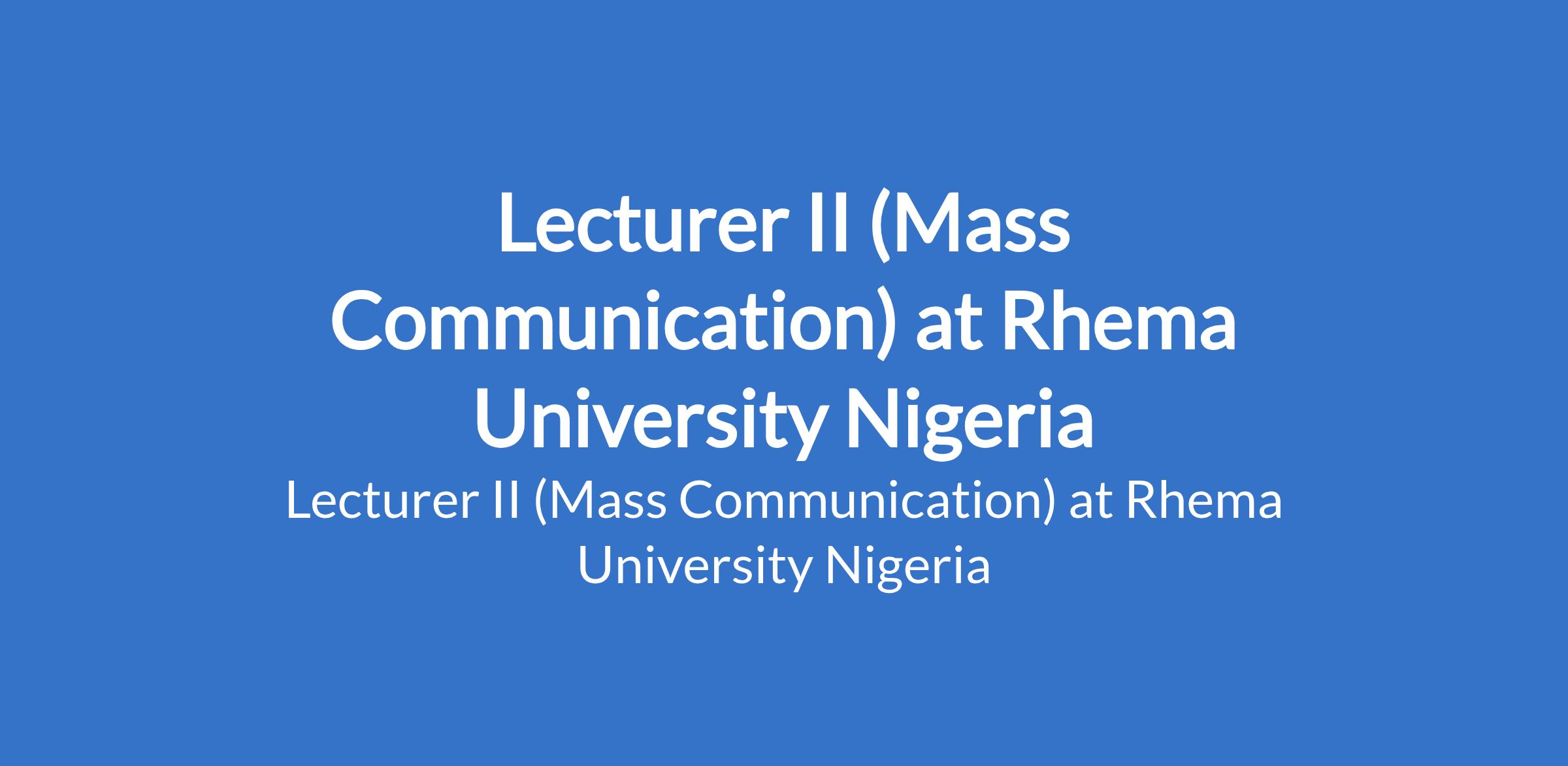 Rhema University Nigeria invites applications from suitably qualified candidates for the position of: Lecturer II (Mass Communication). The position is located in Aba, Abia State. Interested candidates should possess a Ph.D Degree with relevant experience.