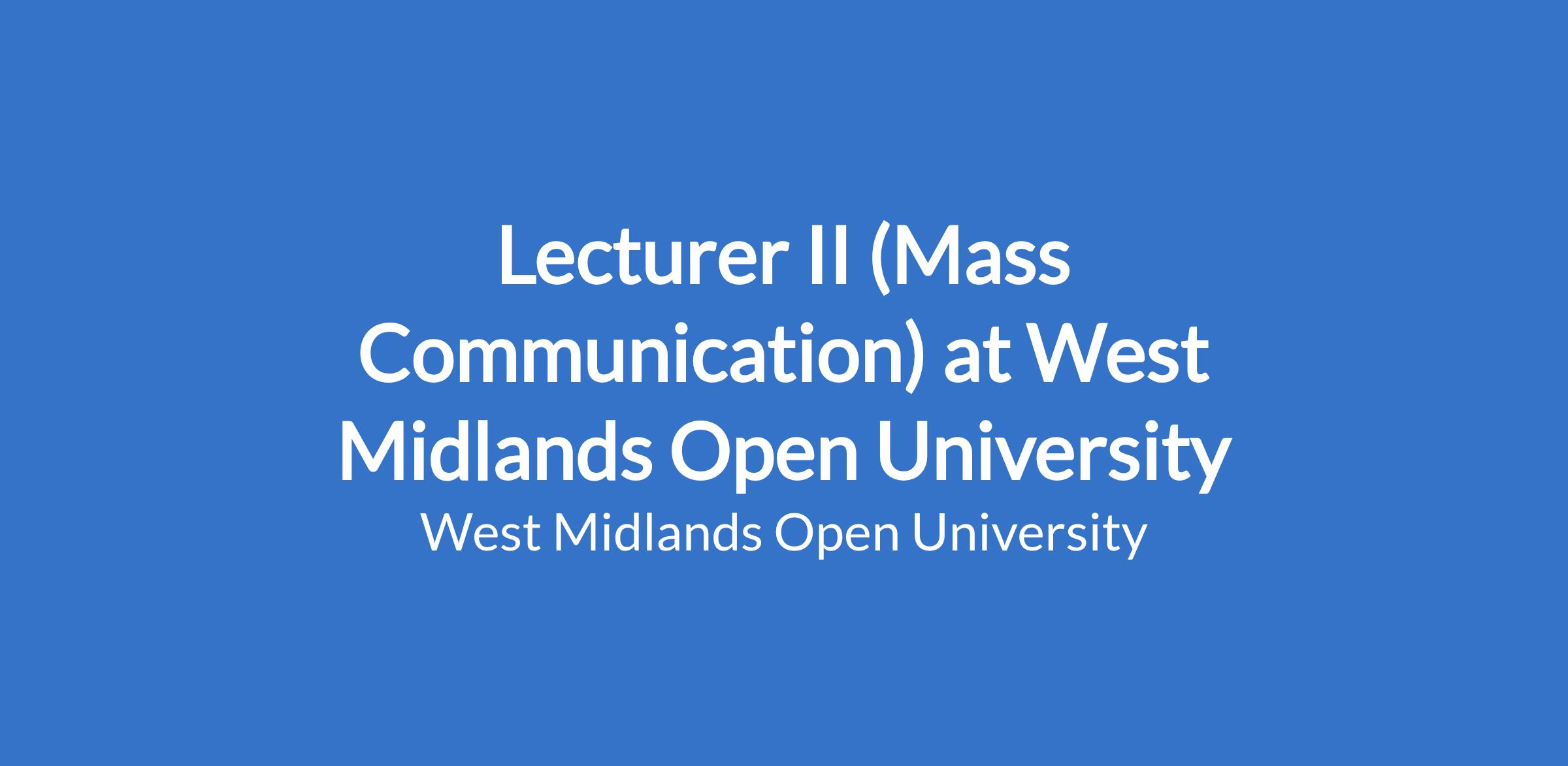 Lecturer II (Mass Communication) at West Midlands Open University