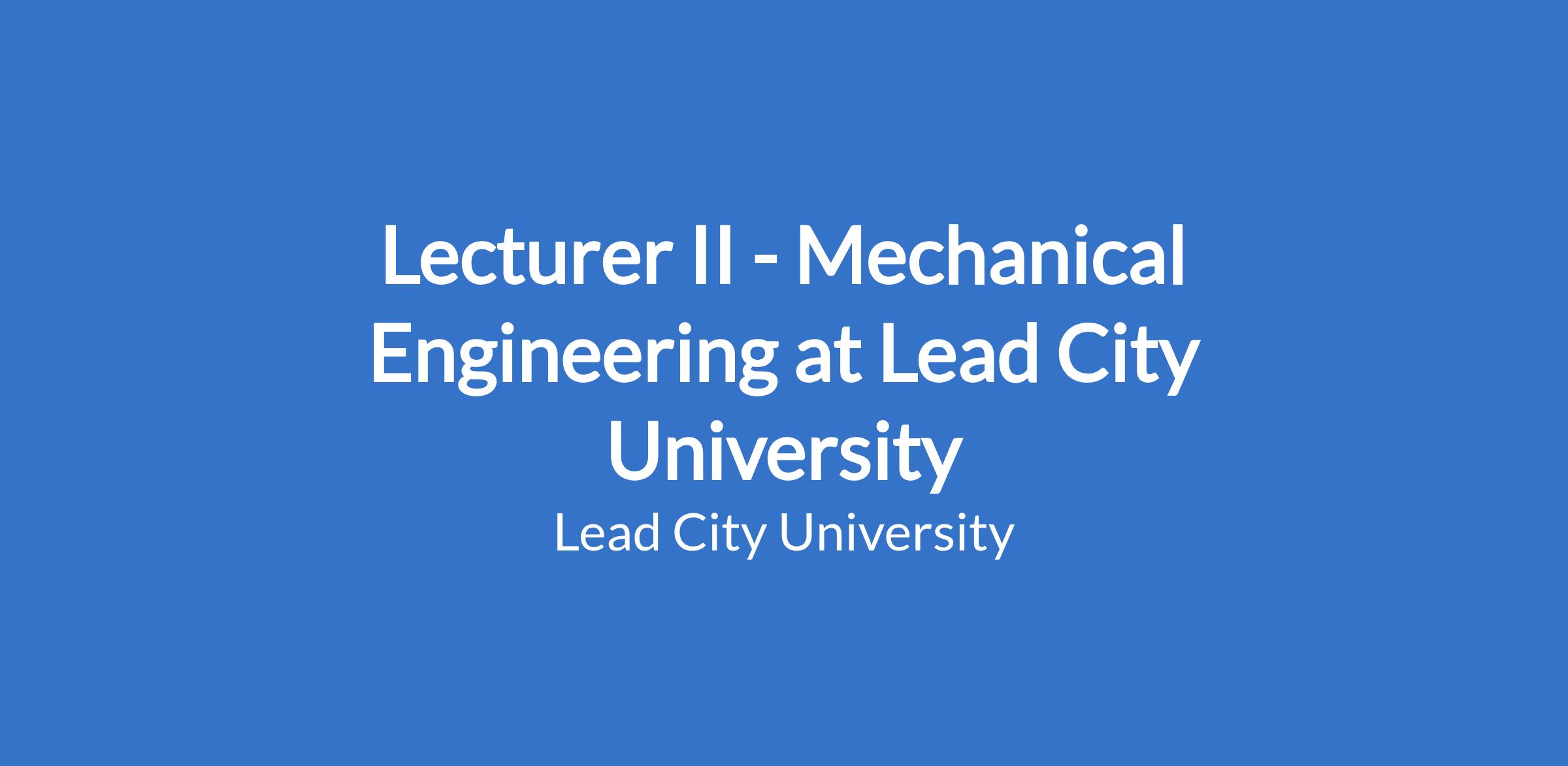 Lecturer II - Mechanical Engineering at Lead City University