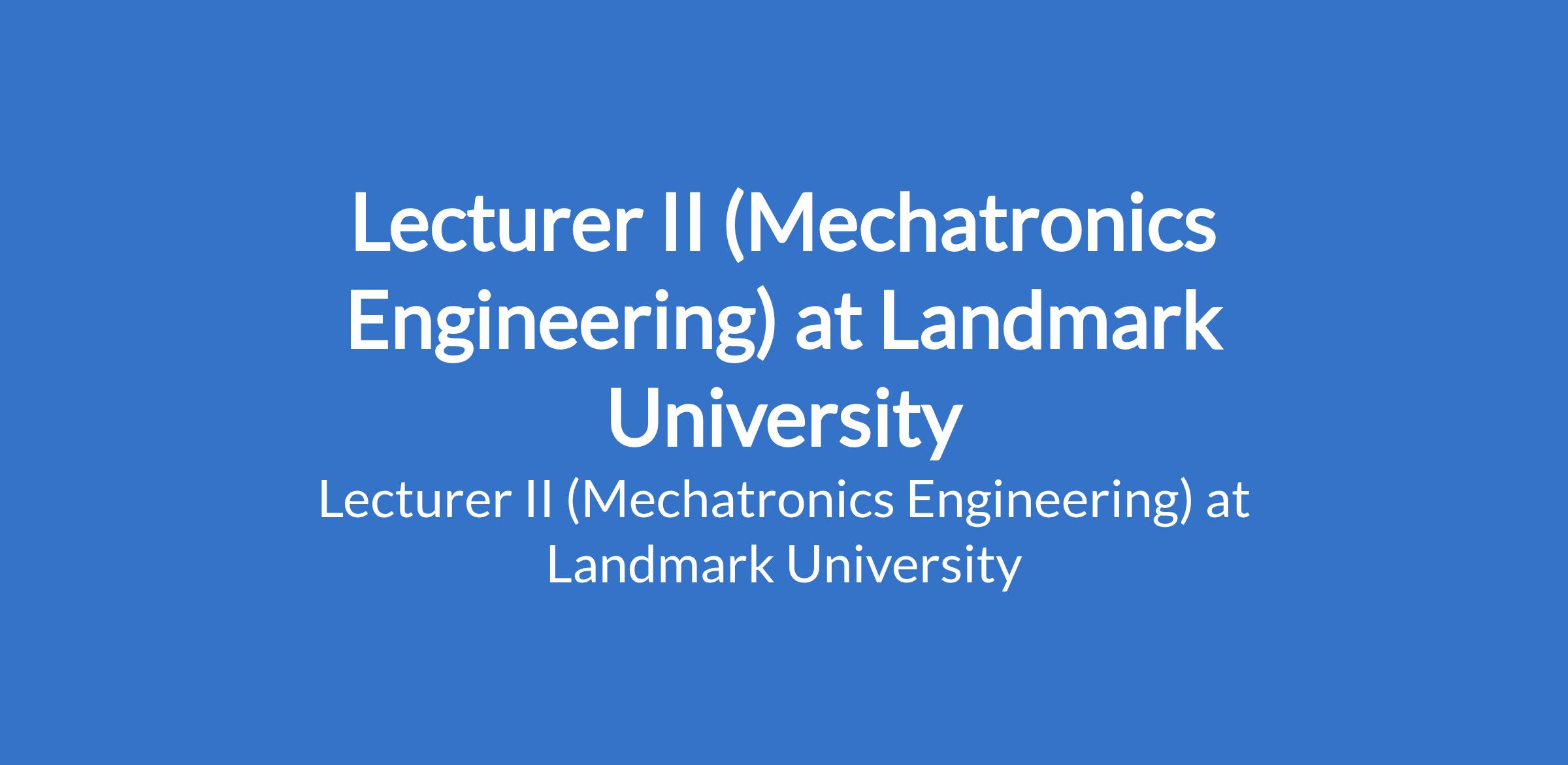 Landmark University invites applications from suitable candidates to fill the position of: Lecturer II (Mechatronics Engineering). The position is located in Omu-Aran, Kwara State. Interested candidates should possess a Ph.D. Degree from a reputable university, with or without evidence of scholarly publications.
