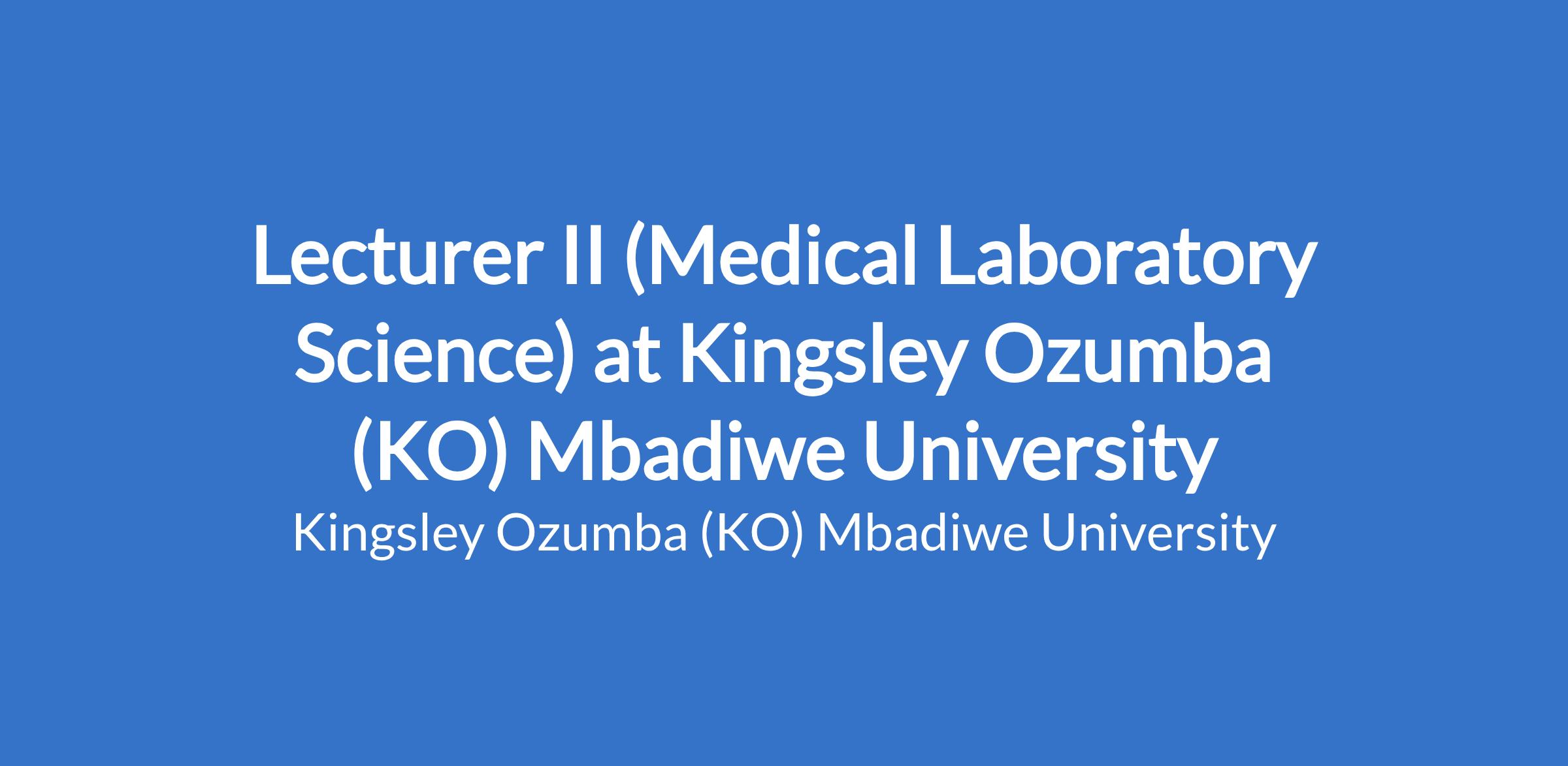Lecturer II (Medical Laboratory Science) at Kingsley Ozumba (KO) Mbadiwe University