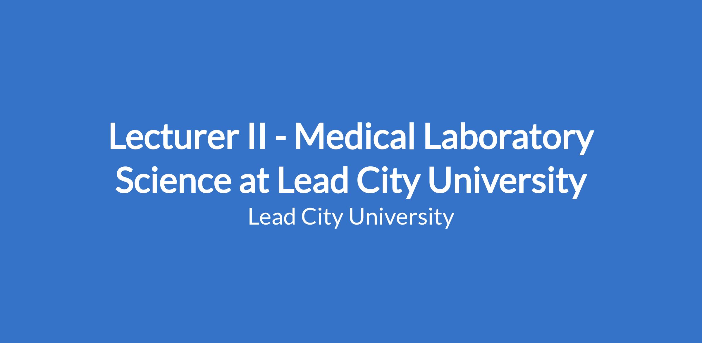 Lecturer II - Medical Laboratory Science at Lead City University