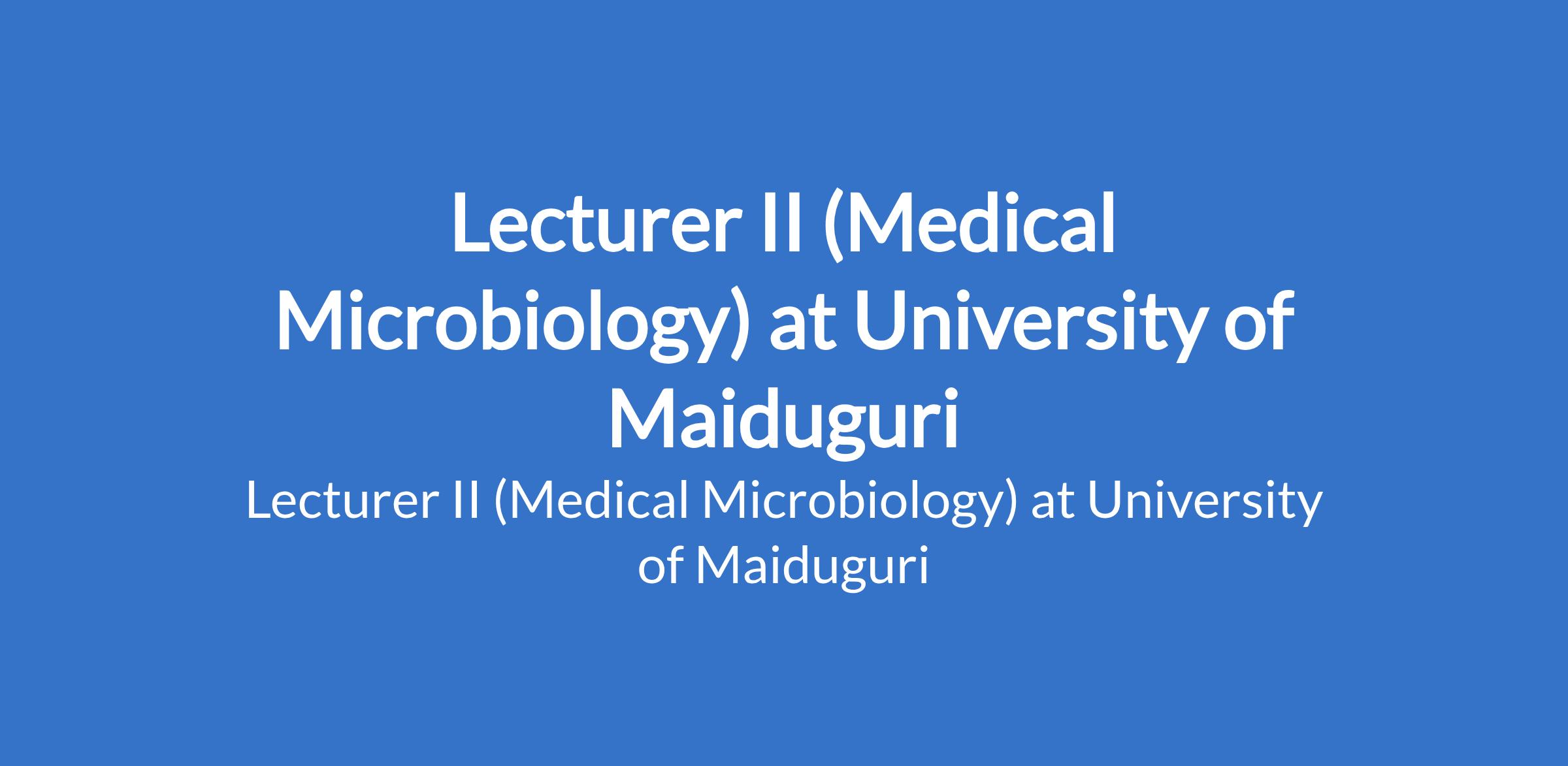 University of Maiduguri invites applications from suitable candidates to fill the position of: Lecturer II (Medical Microbiology). The position is located in Borno State. Interested candidates should possess a Master's Degree from University of Maiduguri or another recognised institution with at least three years post-qualification experience.