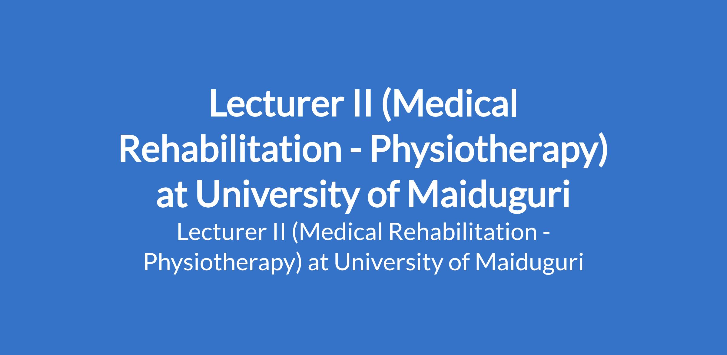 University of Maiduguri invites applications from suitable candidates to fill the position of: Lecturer II (Medical Rehabilitation - Physiotherapy). The position is located in Borno State. Interested candidates should possess a Master's Degree from University of Maiduguri or another recognised institution with at least three years post-qualification experience.