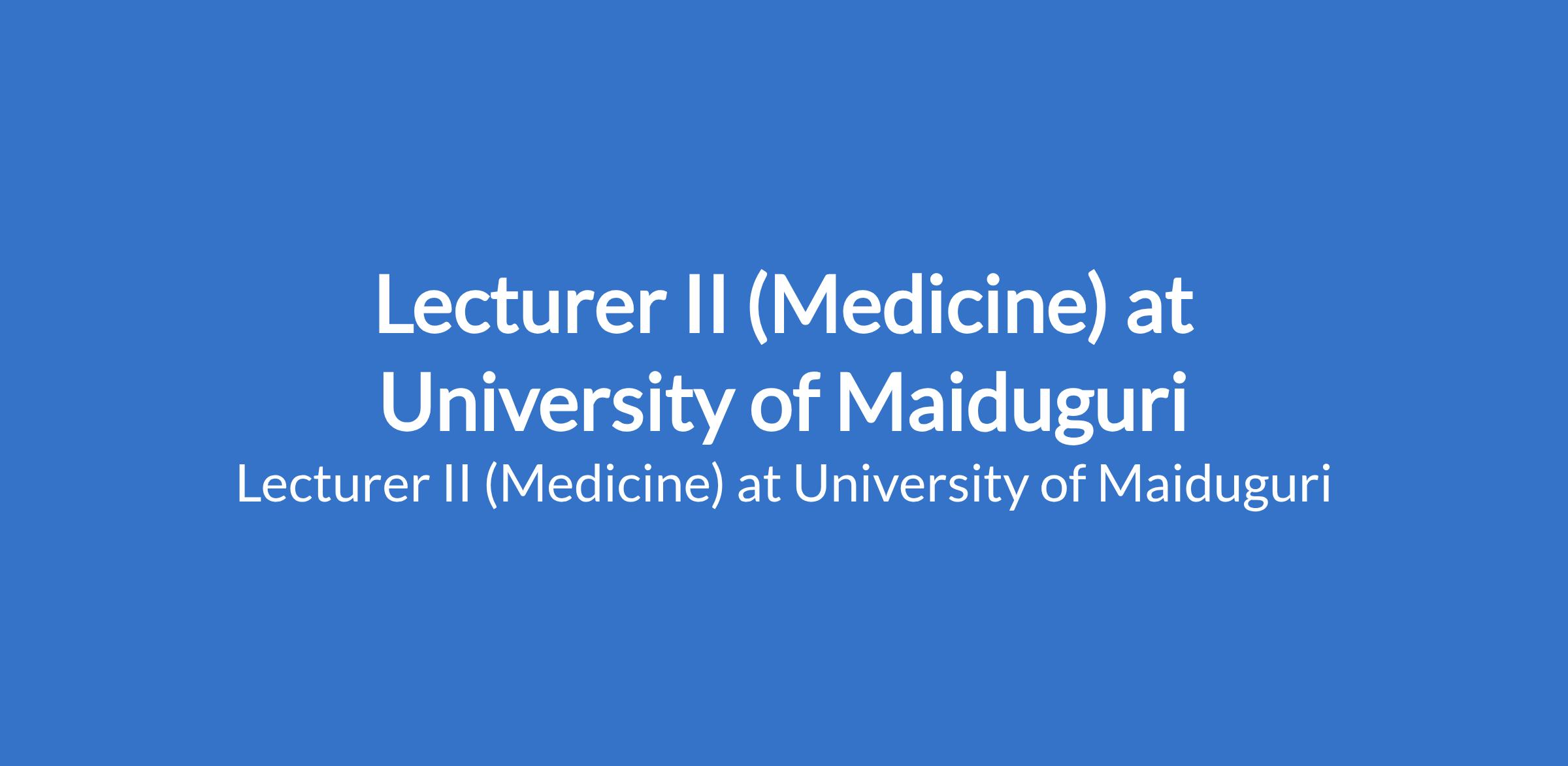 University of Maiduguri invites applications from suitable candidates to fill the position of: Lecturer II (Medicine). The position is located in Borno State. Interested candidates should possess a Master's Degree from University of Maiduguri or another recognised institution with at least three years post-qualification experience.