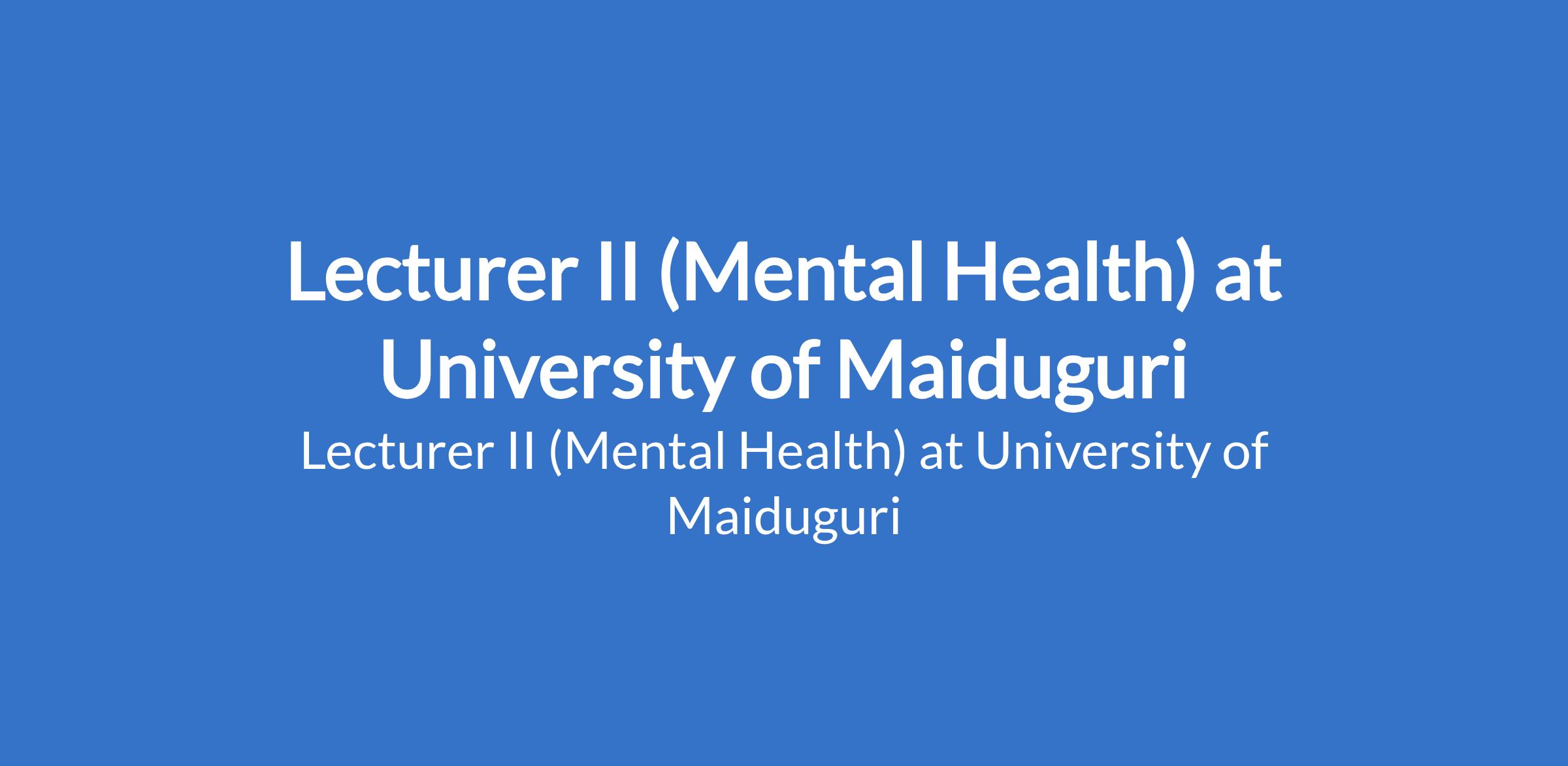 University of Maiduguri invites applications from suitable candidates to fill the position of: Lecturer II (Mental Health). The position is located in Borno State. Interested candidates should possess a Master's Degree from University of Maiduguri or another recognised institution with at least three years post-qualification experience.