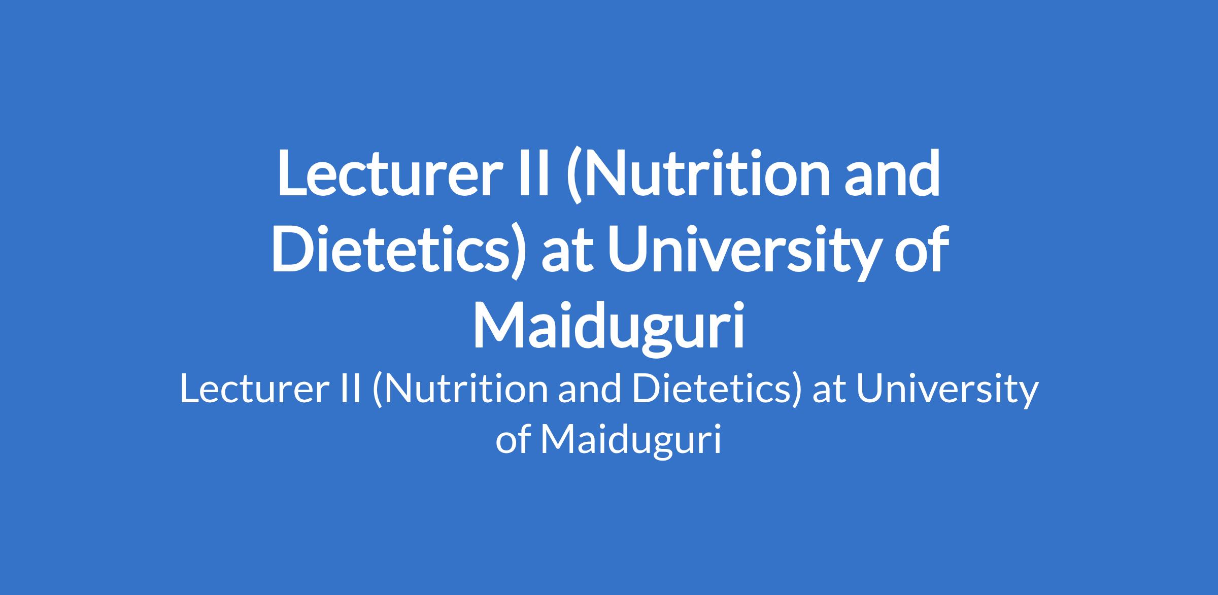 University of Maiduguri invites applications from suitable candidates to fill the position of: Lecturer II (Nutrition and Dietetics). The position is located in Borno State. Interested candidates should possess a Master's Degree from University of Maiduguri or another recognised institution with at least three years post-qualification experience.