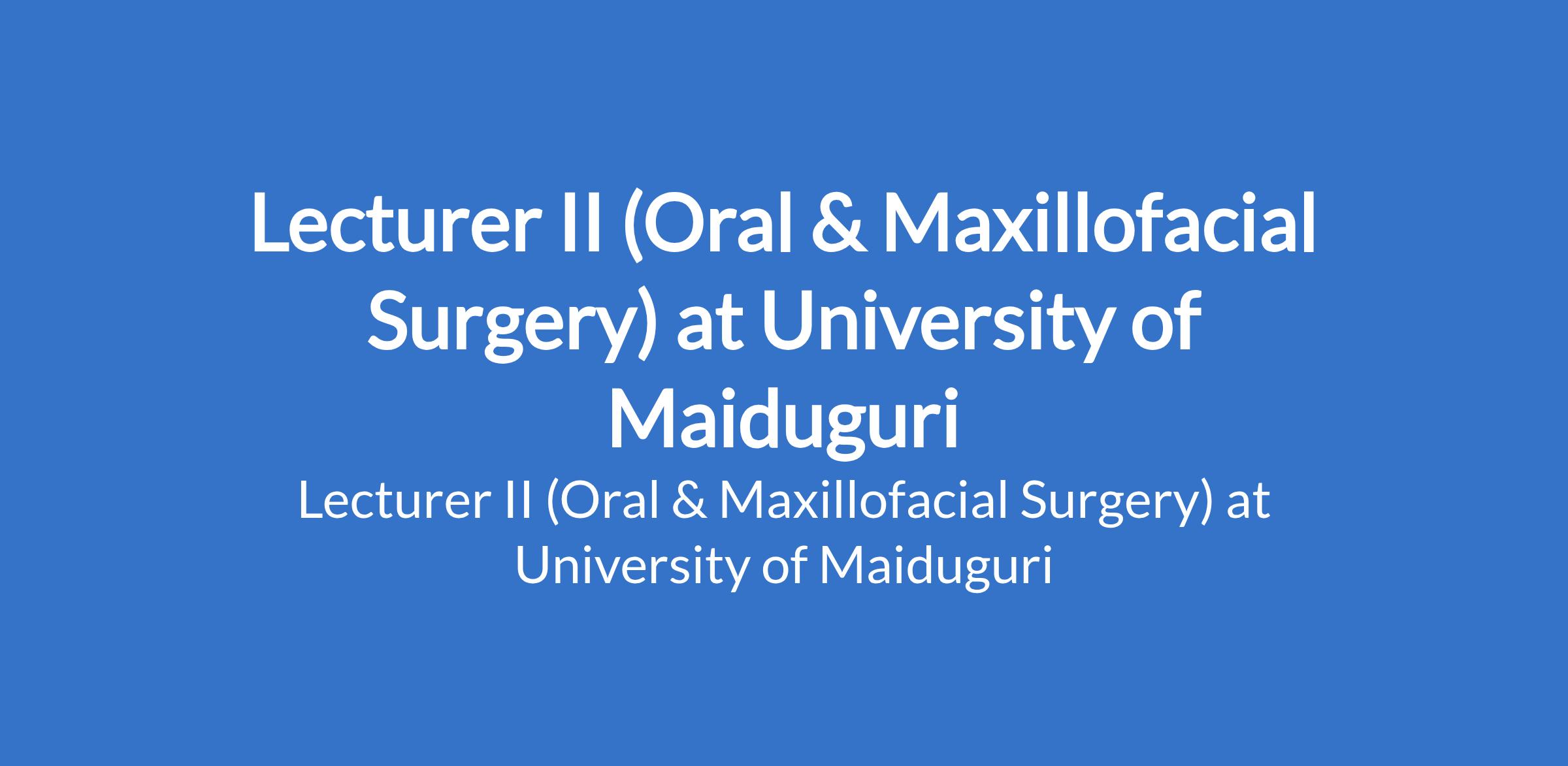 University of Maiduguri invites applications from suitable candidates to fill the position of: Lecturer II (Oral & Maxillofacial Surgery). The position is located in Borno State. Interested candidates should possess a Master's Degree from University of Maiduguri or another recognised institution with at least three years post-qualification experience.