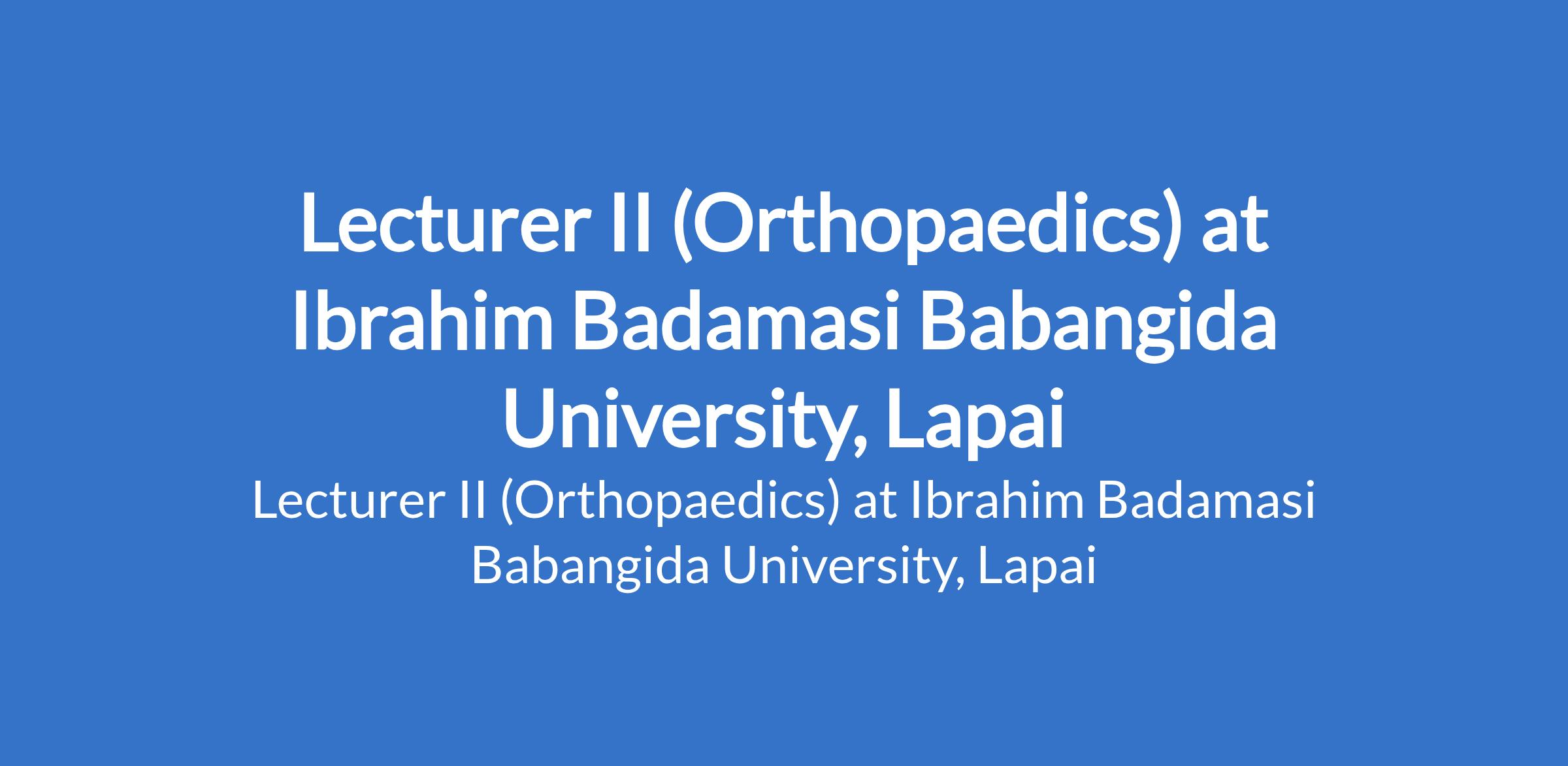 Ibrahim Badamasi Babangida University, Lapai invites applications from suitably qualified candidates to fill the position of: Lecturer II (Orthopaedics). The position is located in Niger State. Interested candidates must possess an M.B.B.S Degree from a recognized University plus professional registration with Medical and Dental Council of Nigeria (MDCN) and NYSC certificate/exemption certificate.