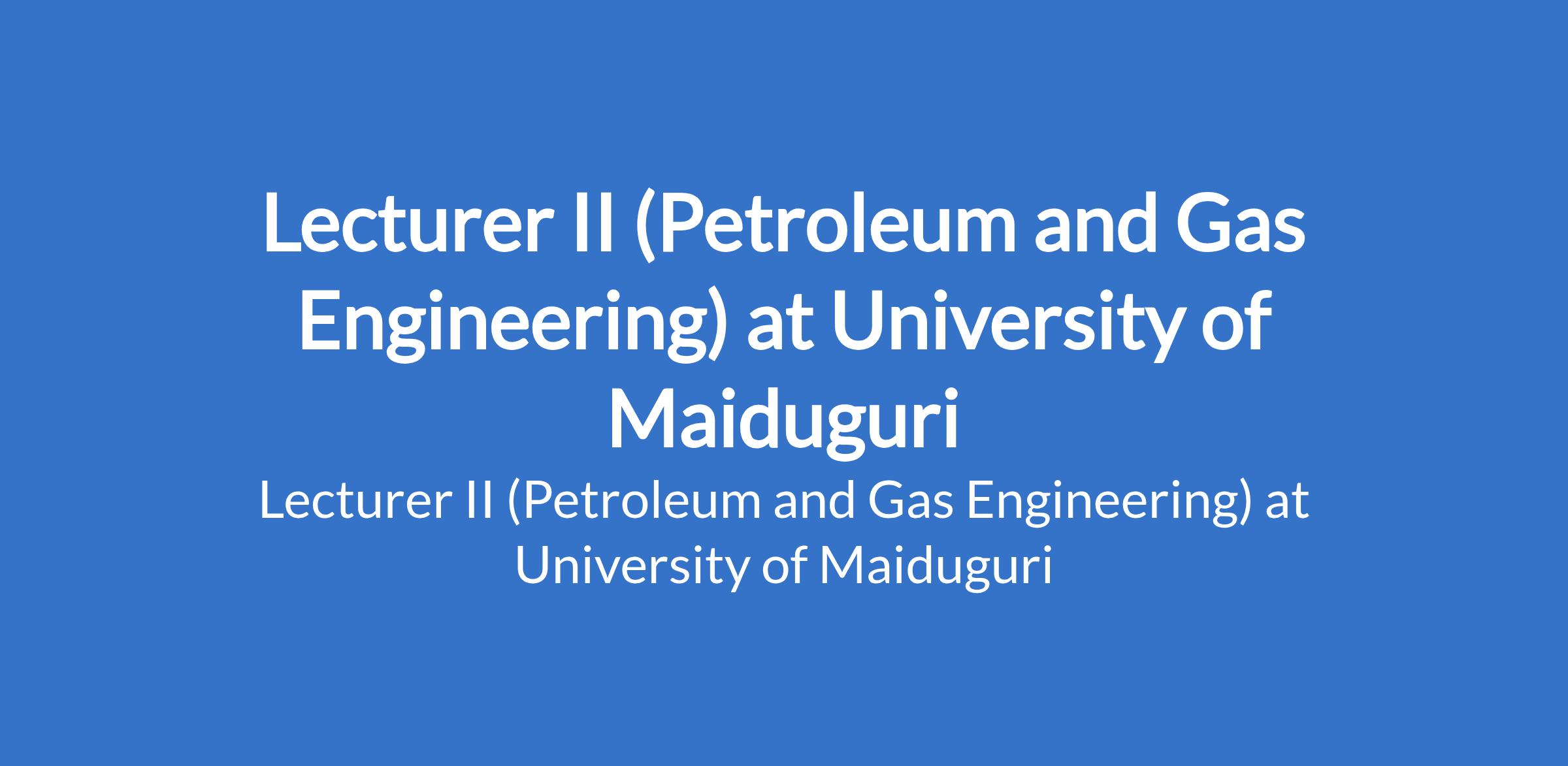 University of Maiduguri invites applications from suitable candidates to fill the position of: Lecturer II (Petroleum and Gas Engineering). The position is located in Borno State. Interested candidates should possess a Master's Degree from University of Maiduguri or another recognised institution with at least three years post-qualification experience.