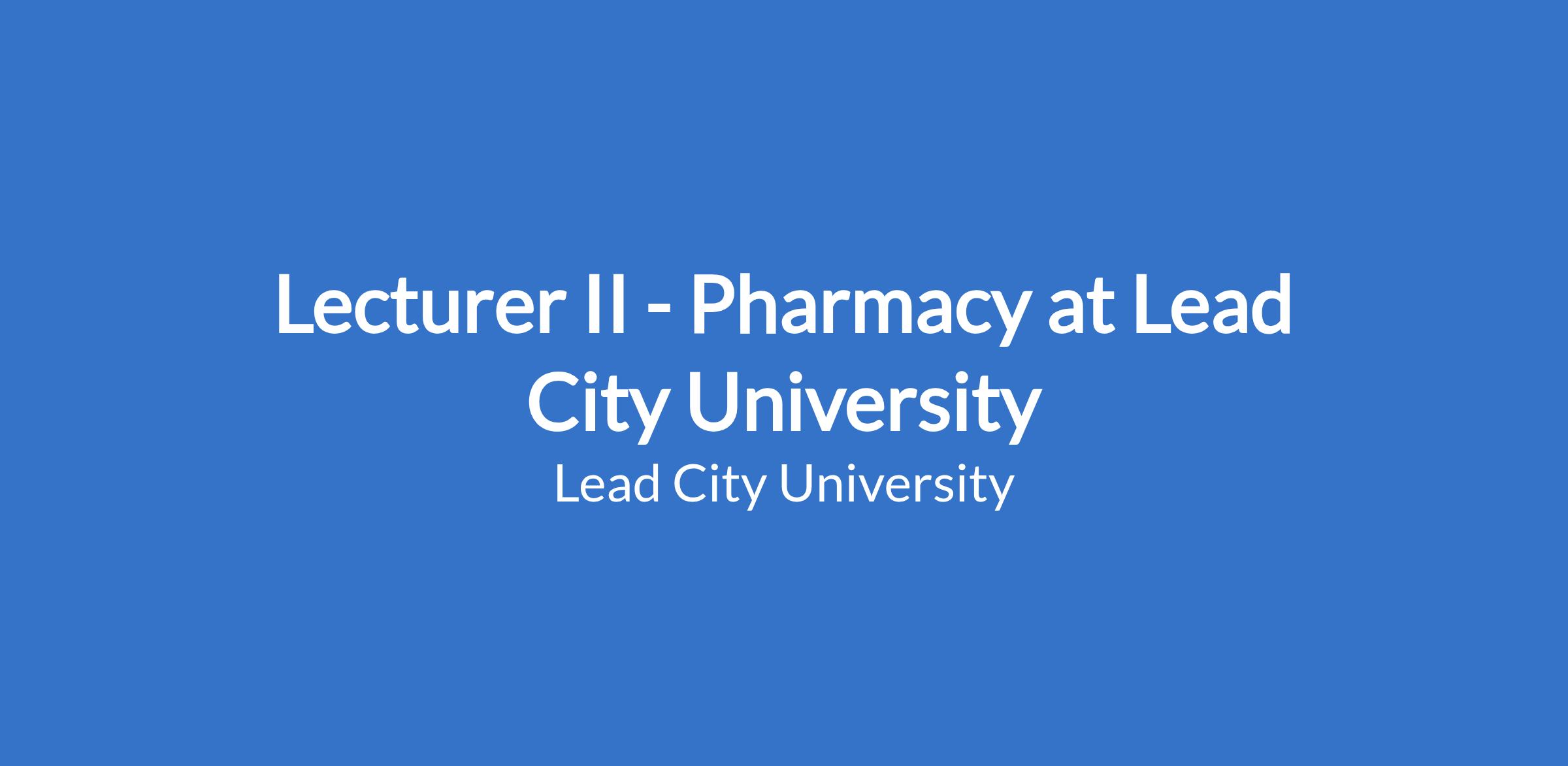 Lecturer II - Pharmacy at Lead City University