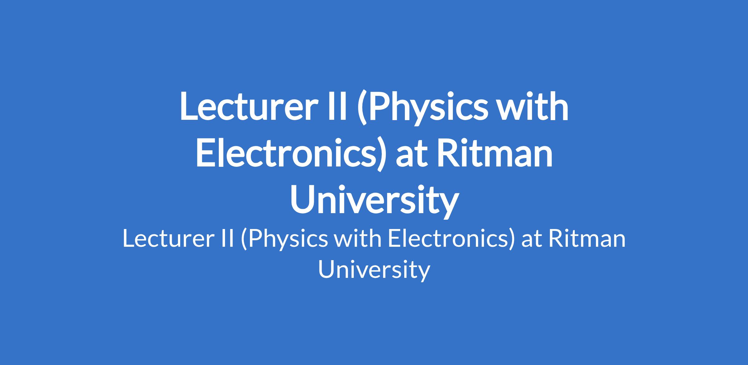 Ritman University is recruiting to fill the position of: Lecturer II (Physics with Electronics). The position is located in Ikot Ekpene, Akwa Ibom State. Interested candidates should possess a Doctorate Degree (Ph.D.) in the relevant and also a good First Degree (Bachelor's) and a Master's degree in the relevant discipline with at least 4 years of teaching and research experience in a university environment.