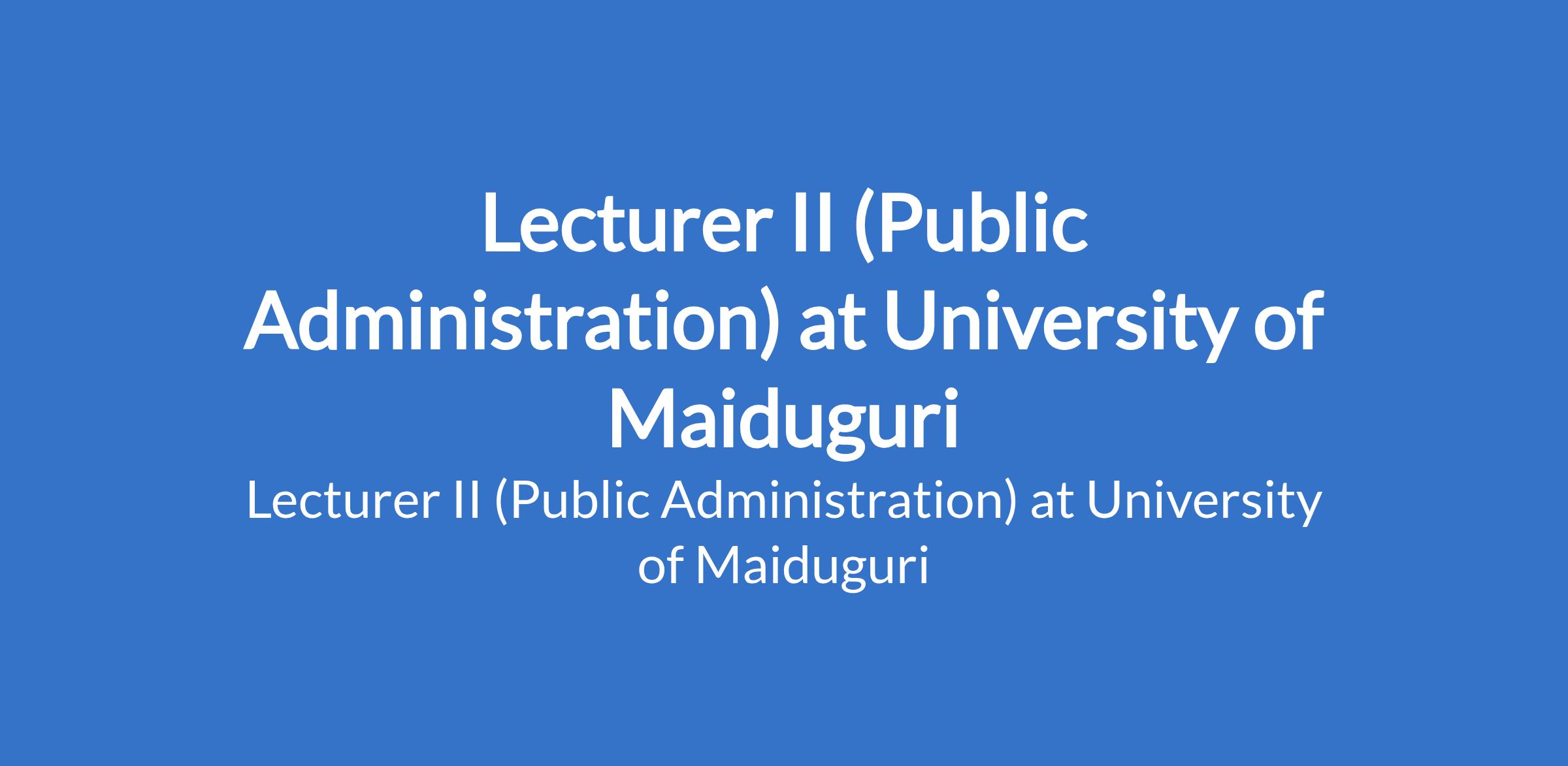 University of Maiduguri invites applications from suitable candidates to fill the position of: Lecturer II (Public Administration). The position is located in Borno State. Interested candidates should possess a Master's Degree from University of Maiduguri or another recognised institution with at least three years post-qualification experience.