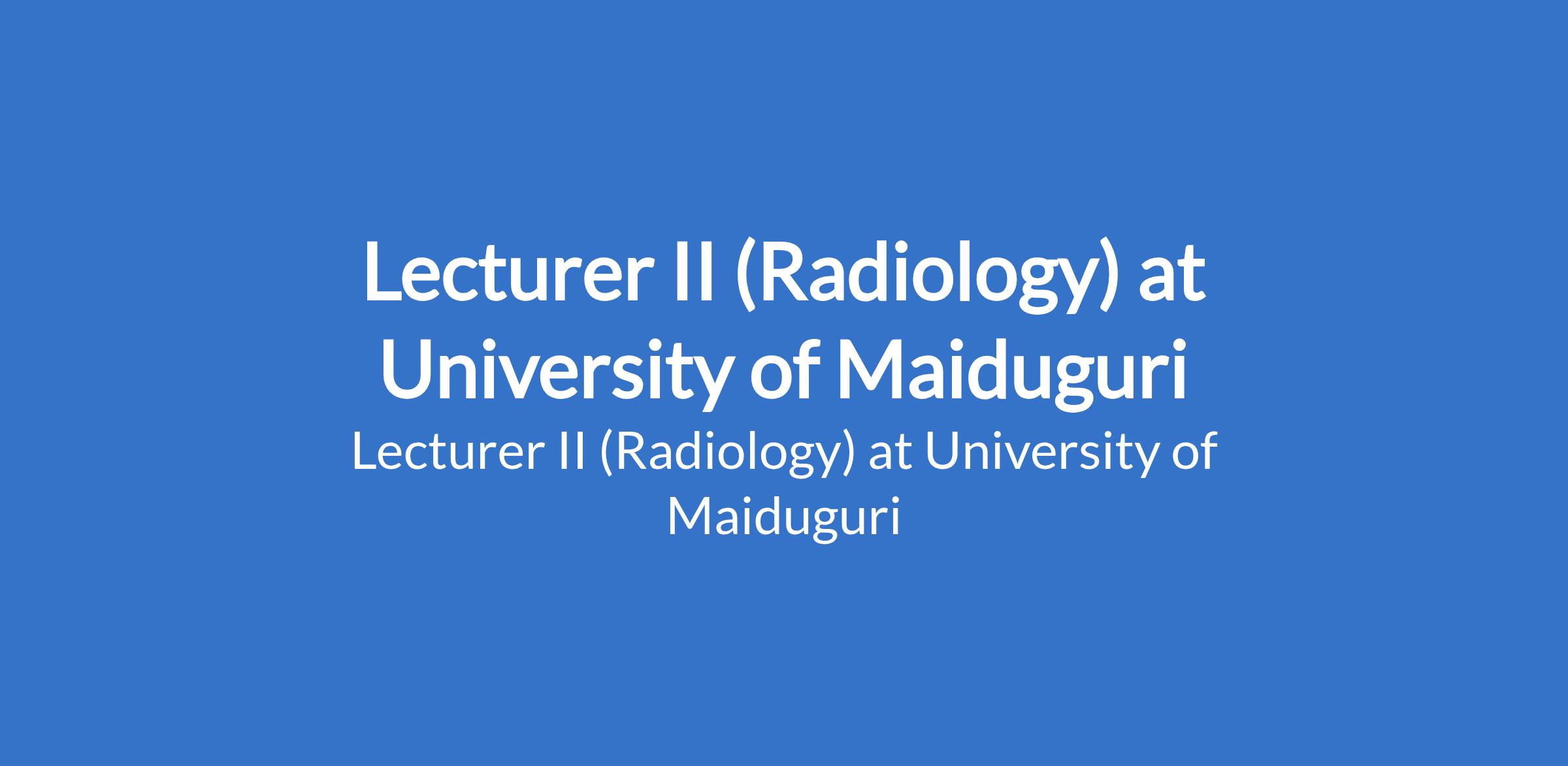 University of Maiduguri invites applications from suitable candidates to fill the position of: Lecturer II (Radiology). The position is located in Borno State. Interested candidates should possess a Master's Degree from University of Maiduguri or another recognised institution with at least three years post-qualification experience.