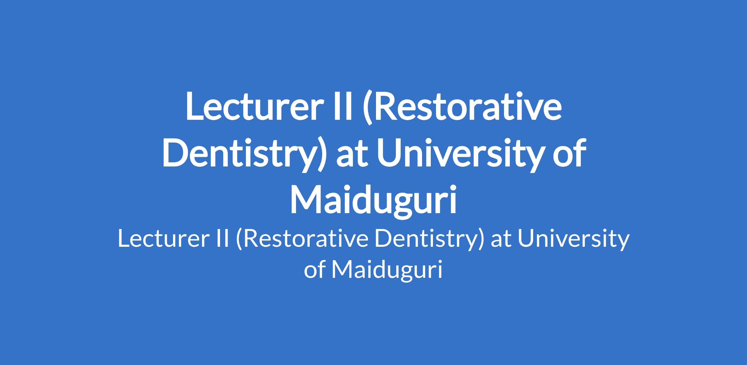 University of Maiduguri invites applications from suitable candidates to fill the position of: Lecturer II (Restorative Dentistry). The position is located in Borno State. Interested candidates should possess a Master's Degree from University of Maiduguri or another recognised institution with at least three years post-qualification experience.