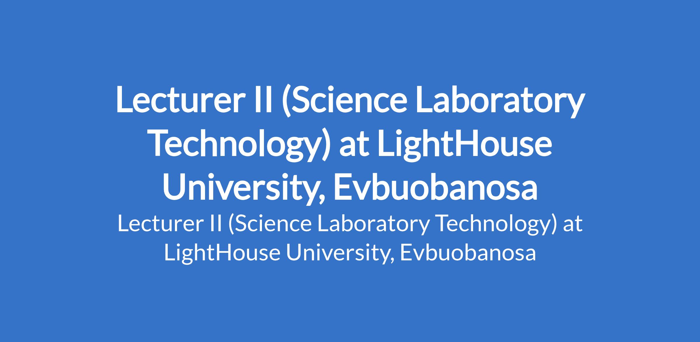 LightHouse University, Evbuobanosa invites applications from suitably qualified candidates to fill the position of: Lecturer II (Science Laboratory Technology). The position is located in Edo State. Interested candidates should possess a Ph.D. Degree in the relevant field or evidence of Ph.D defense required; publications are added advantage.