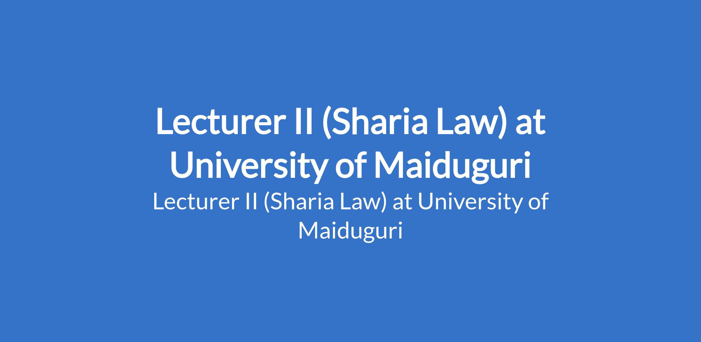 University of Maiduguri invites applications from suitable candidates to fill the position of: Lecturer II (Sharia Law). The position is located in Borno State. Interested candidates should possess a Master's Degree from University of Maiduguri or another recognised institution with at least three years post-qualification experience.