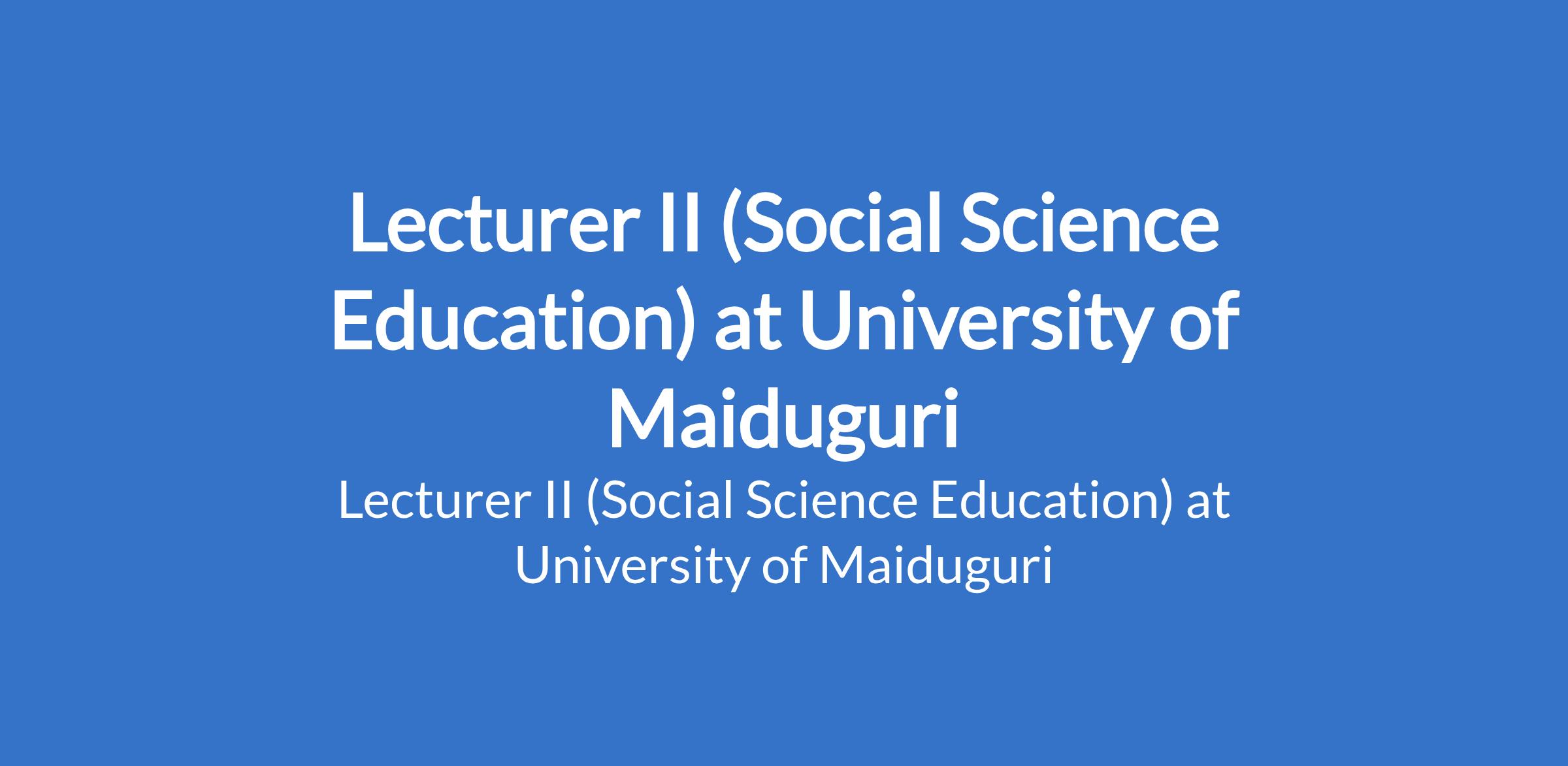 University of Maiduguri invites applications from suitable candidates to fill the position of: Lecturer II (Social Science Education). The position is located in Borno State. Interested candidates should possess a Master's Degree from University of Maiduguri or another recognised institution with at least three years post-qualification experience.