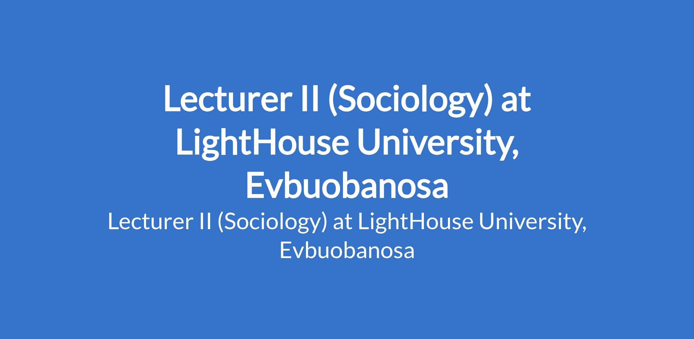 LightHouse University, Evbuobanosa invites applications from suitably qualified candidates to fill the position of: Lecturer II (Sociology). The position is located in Edo State. Interested candidates should possess a Ph.D Degree in a relevant field or have evidence of Ph.D defense required with experience.