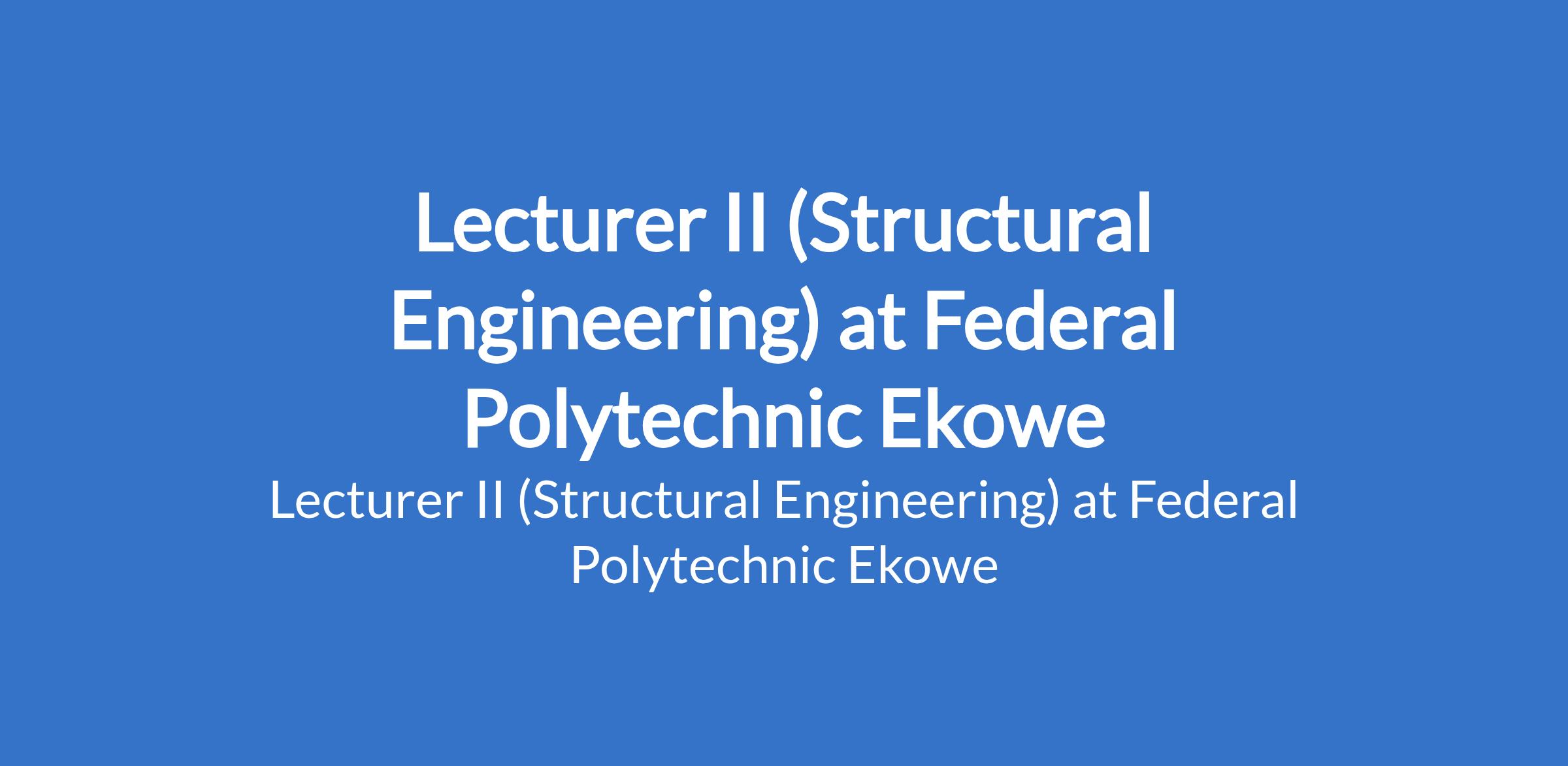 The Federal Polytechnic Ekowe invites applications from suitably qualified candidates for the position of: Lecturer II (Structural Engineering). The position is located in Bayelsa State. Interested candidates should possess a Master's Degree in the relevant field from a recognized Institution with at least three (3) years post-qualification or Ph.D teaching / research / industrial work experience.