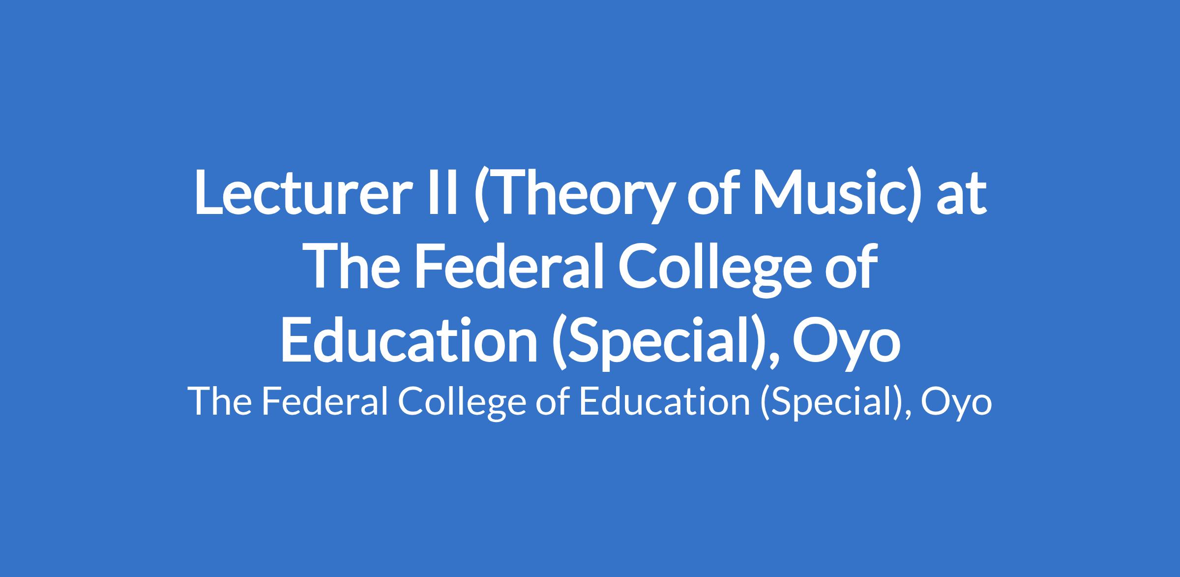 Lecturer II (Theory of Music) at The Federal College of Education (Special), Oyo