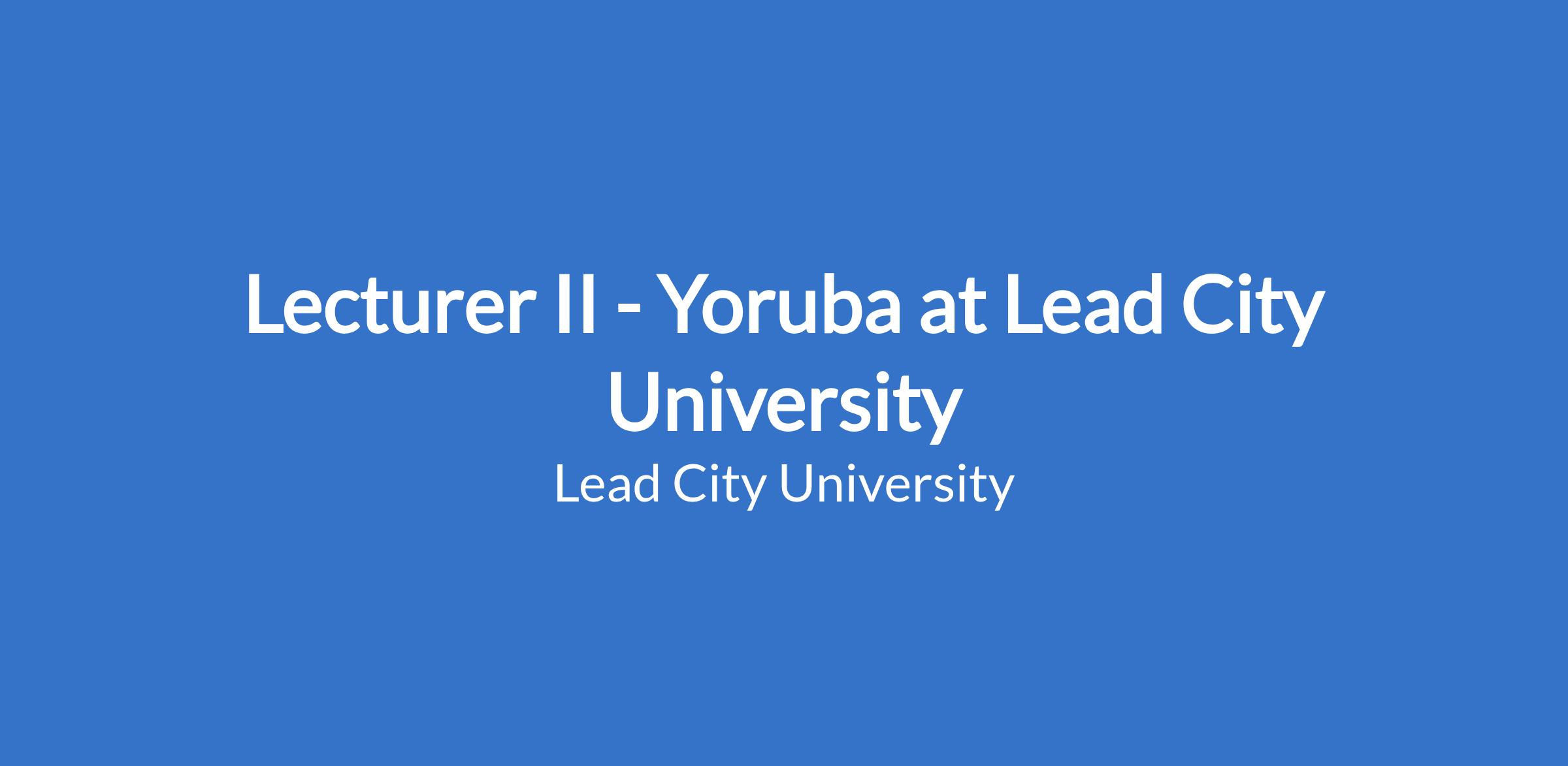 Lecturer II - Yoruba at Lead City University