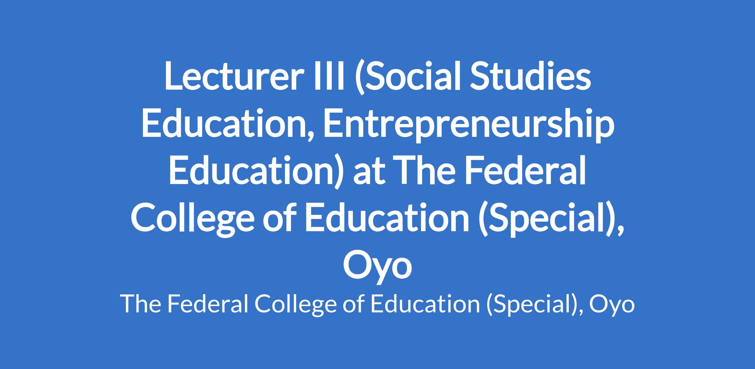Lecturer III (Social Studies Education, Entrepreneurship Education) at The Federal College of Education (Special), Oyo