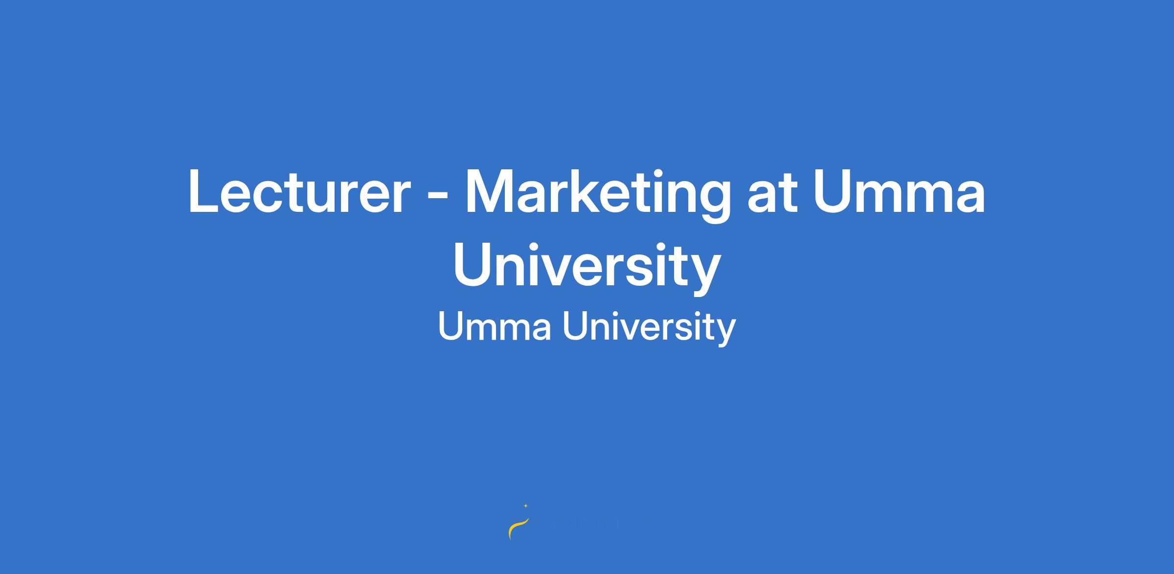 Lecturer - Marketing at Umma University